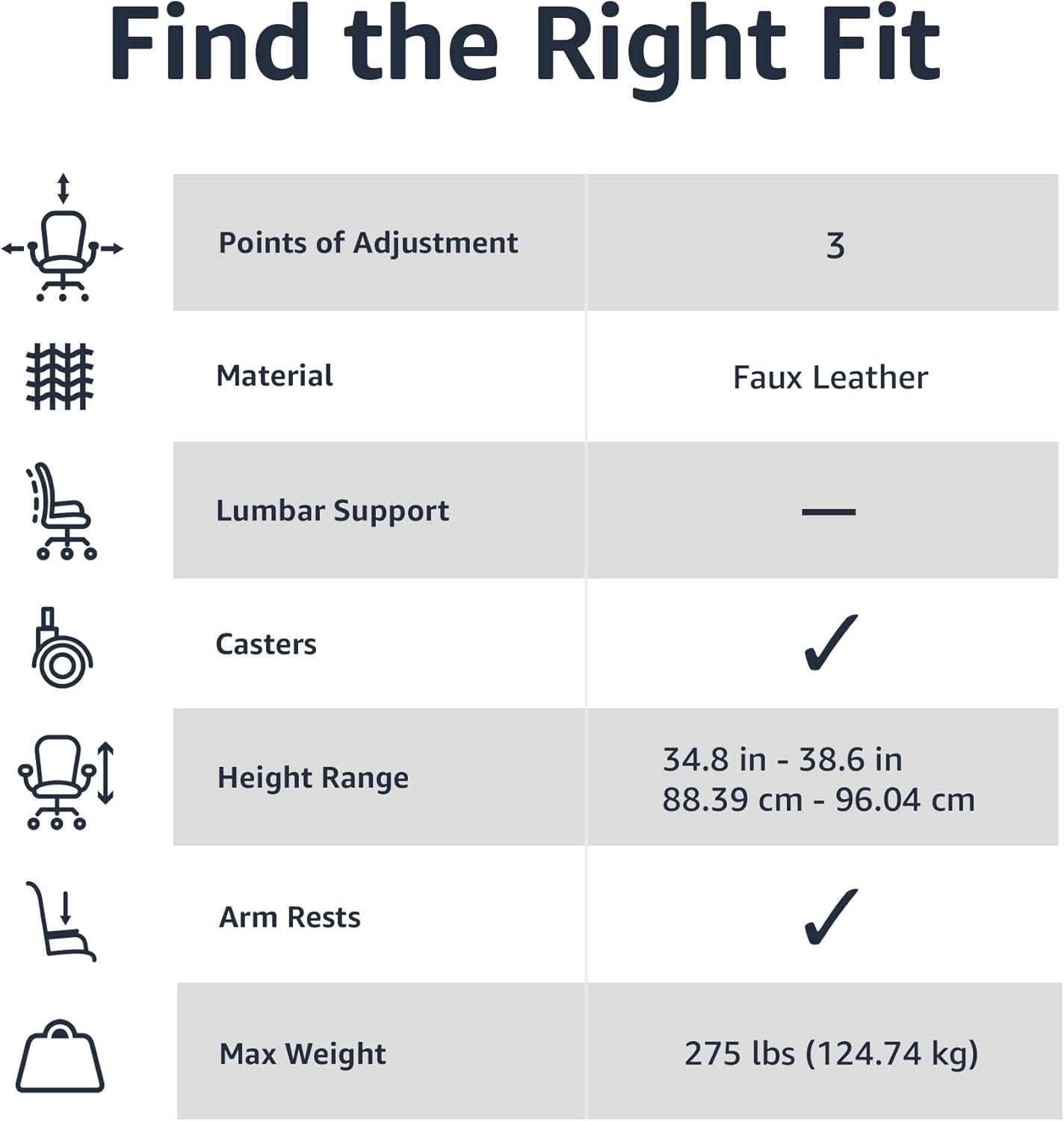 Amazon Basics Office Computer Task Desk Chair with Padded Armrests, Mid-Back, Adjustable, 360 Swivel, Rolling, 275 Pound Capacity, 24.2″D x 24″W x 34.8″H, Black Faux Leather