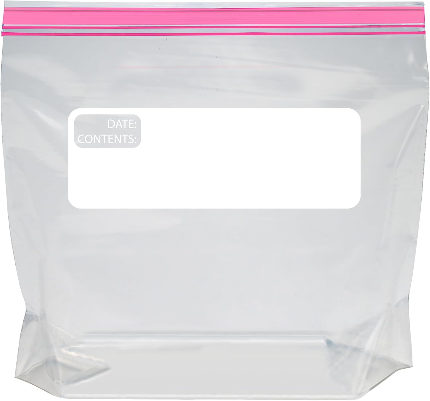 Amazon Basics Quart Food Storage Bags, Reclosable top has a double zipper closure. Stand and Fill base with same quart capacity