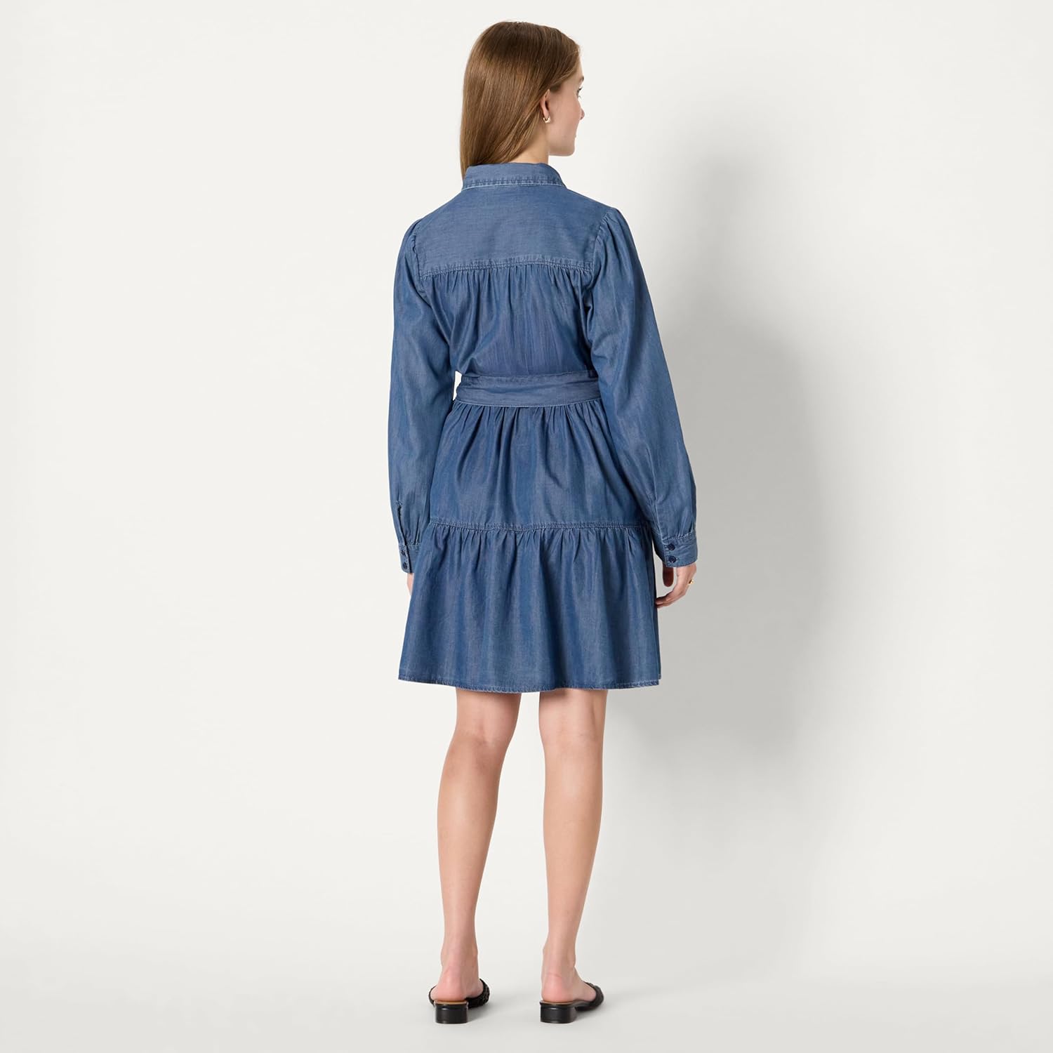 Amazon Essentials Women’s Fit and Flare Denim Chambray Long-Sleeve Tiered Shirtdress