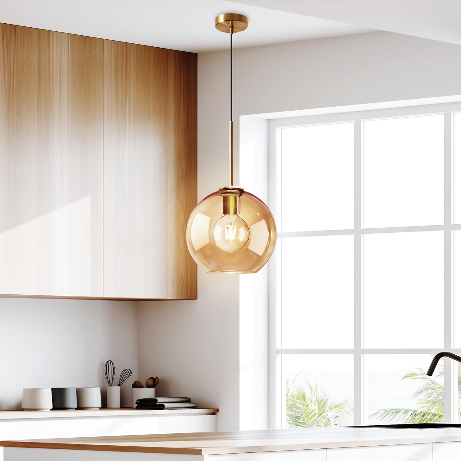 Easy Installation: This kitchen pendant light measures 7.8″ L × 7.8″ W × 54.3″ H, with a 5″ diameter canopy. The installation manual and all necessary accessories are in this glass pendant light kit.
