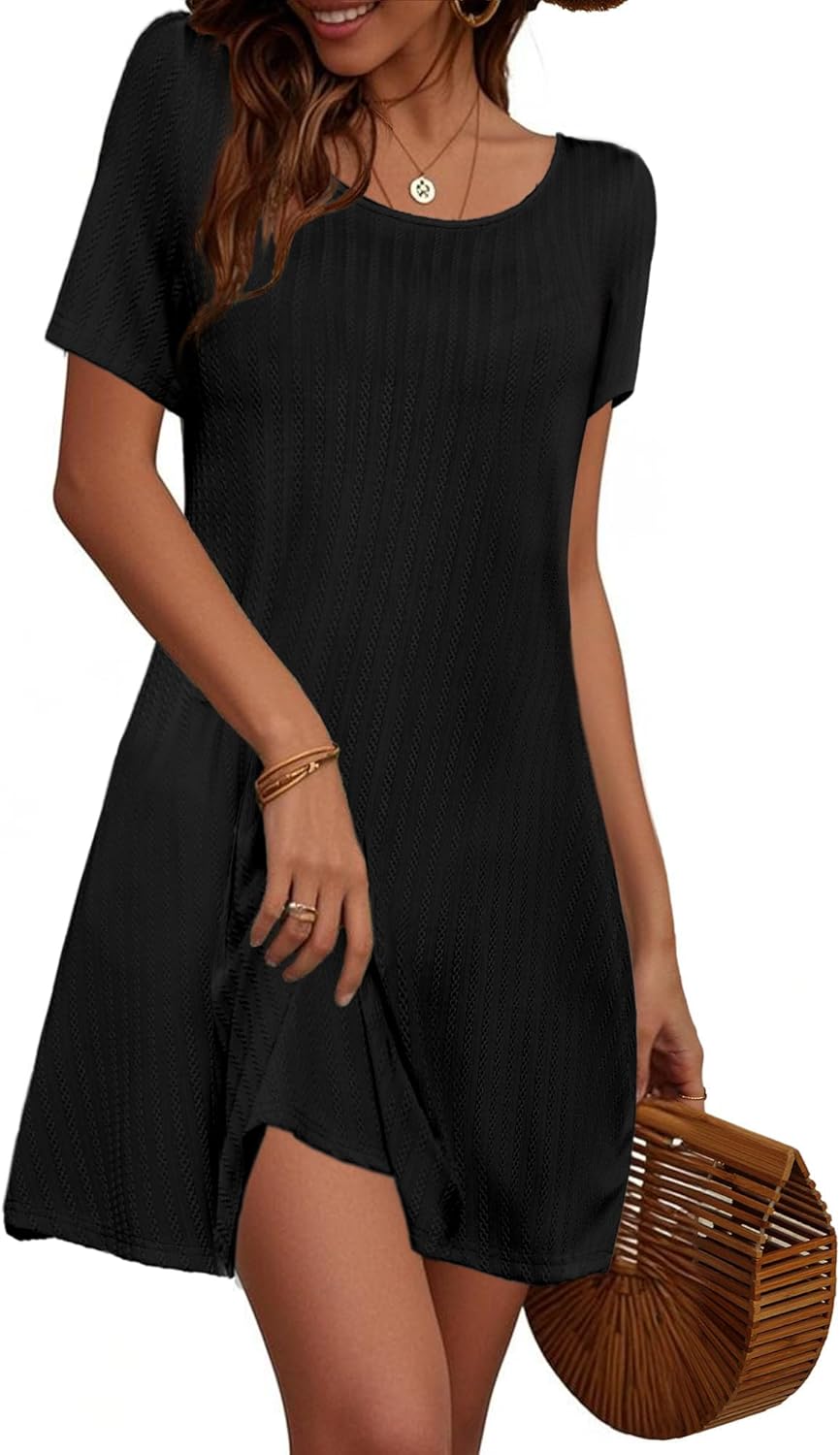 Anbech Women Causal Summer Dresses 2025 Loose Short Sleeve Mini Dress Lightweight A Line Cover Up with Pockets