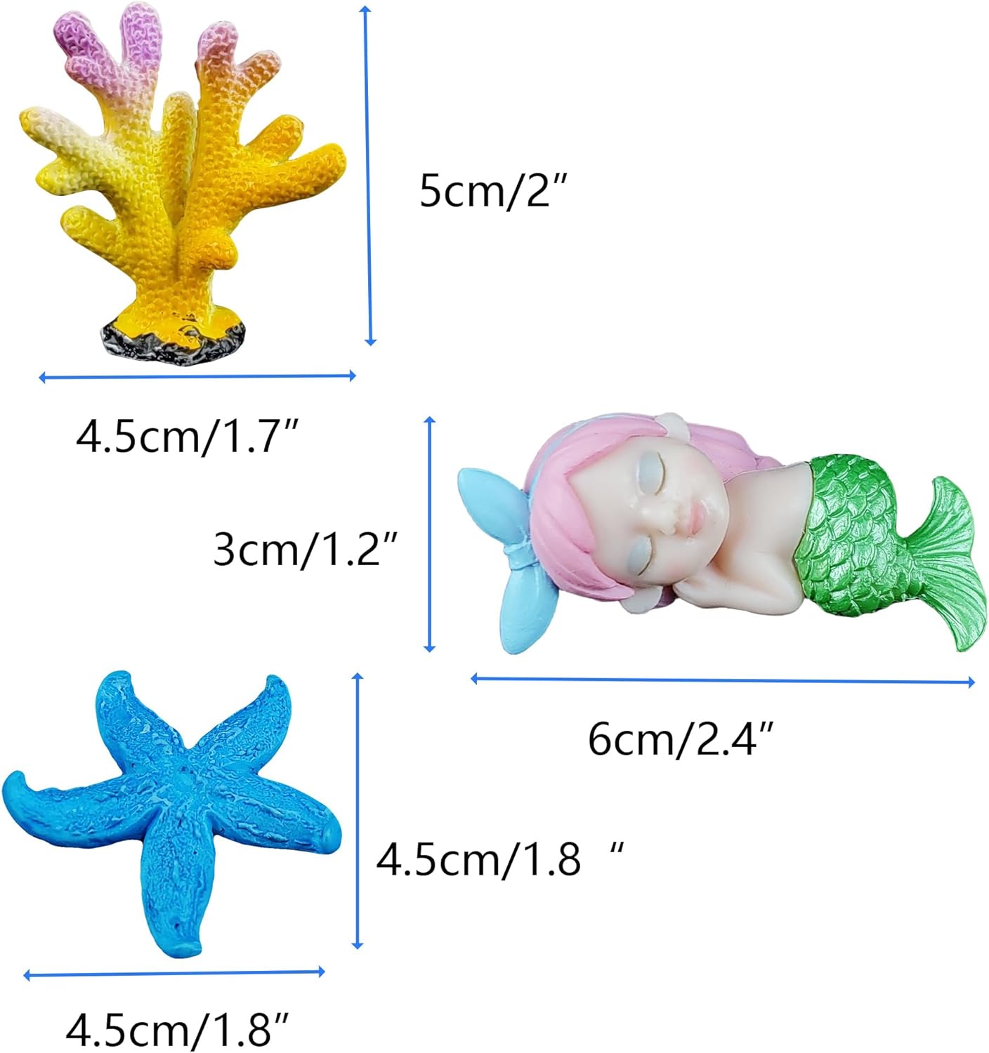 –1. Aquatic Decoration: This aquarium ornament kit is named “dream ocean”, it includes 4pcs: shell hideout, mermaid, artificial coral and starfish. Best for aquarium landscape beginner.