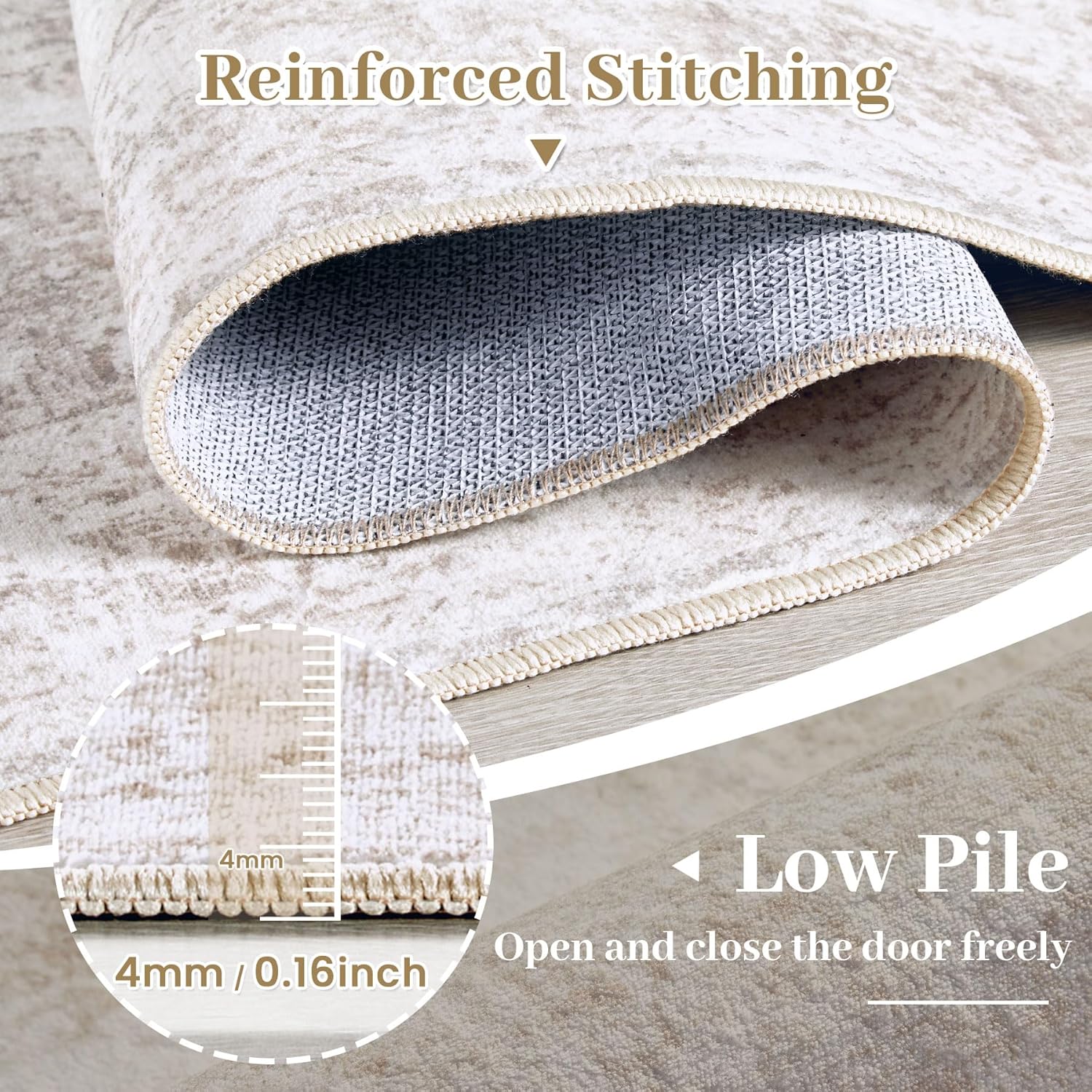 Non-Slip Soft Low Pile Rug: Safety and comfort are paramount, especially in transitional spaces. The Distressed Rug features a non-slip backing, ensuring it stays securely in place, reducing the risk of slips and falls. Its low pile design offers a soft feel underfoot, making it a pleasant addition to any room you choose to place it in. Enjoy the luxury of walking on a cushioned surface without the bulkiness often found in traditional rugs.