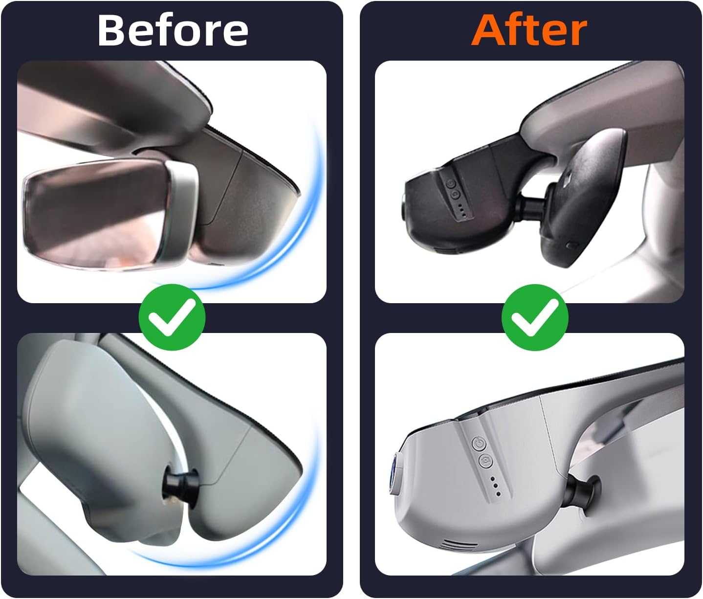 【OEM Style Fit for Audi】Designed specifically for Audi vehicles, this OEM-style Audi dash cam integrates seamlessly into the factory overhead console for a true factory-installed appearance. No suction cups, no adhesive mounts, and no aftermarket hardware—engineered to align with Audi’s clean, tech-forward interior design.