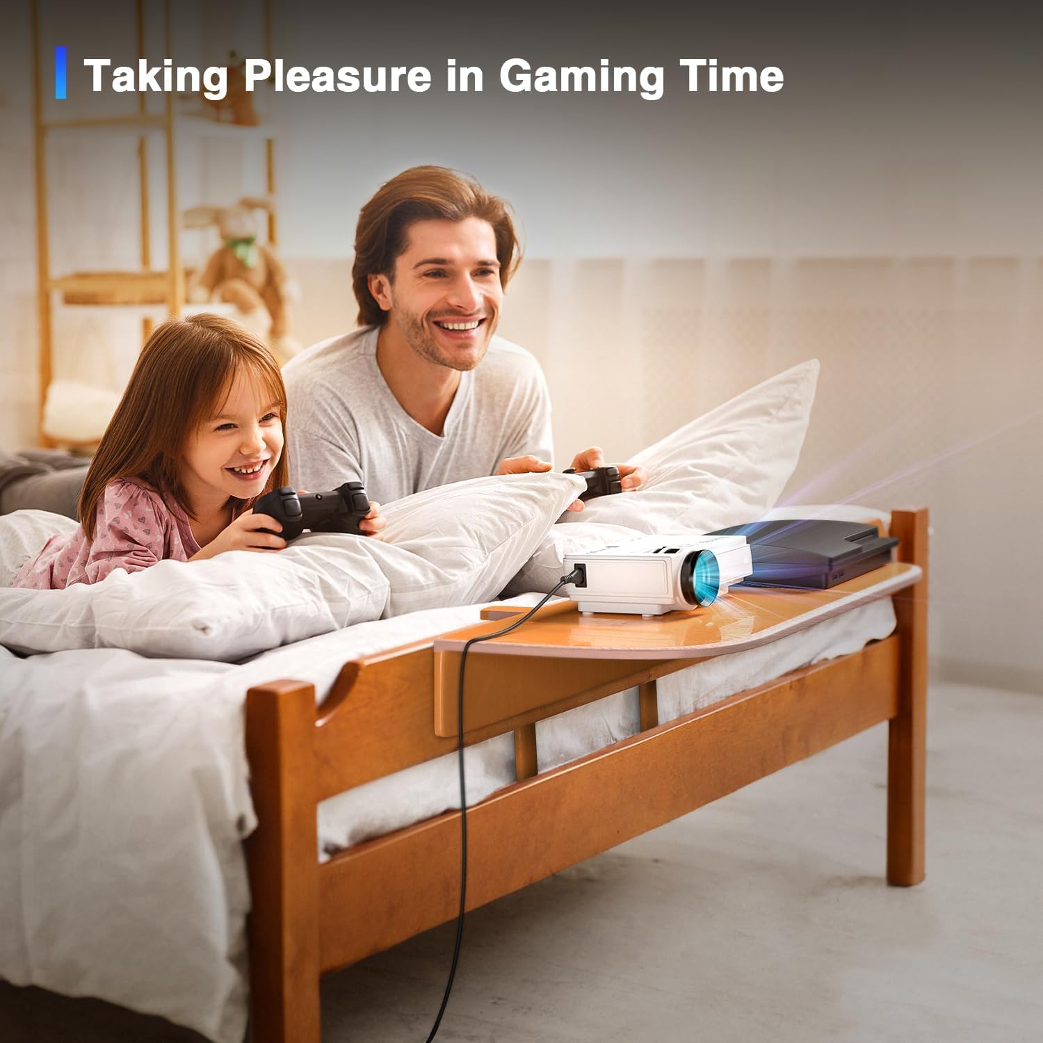 【AuKing 2025 Upgraded Projector】With latest 1080p Full HD resolution supported, AuKing portable projector brings you a clear and sharp detailed images. Adopted the latest color reproduction technology, every details on the screen is accurately restored to ensure a real and color-vibrant viewing effect