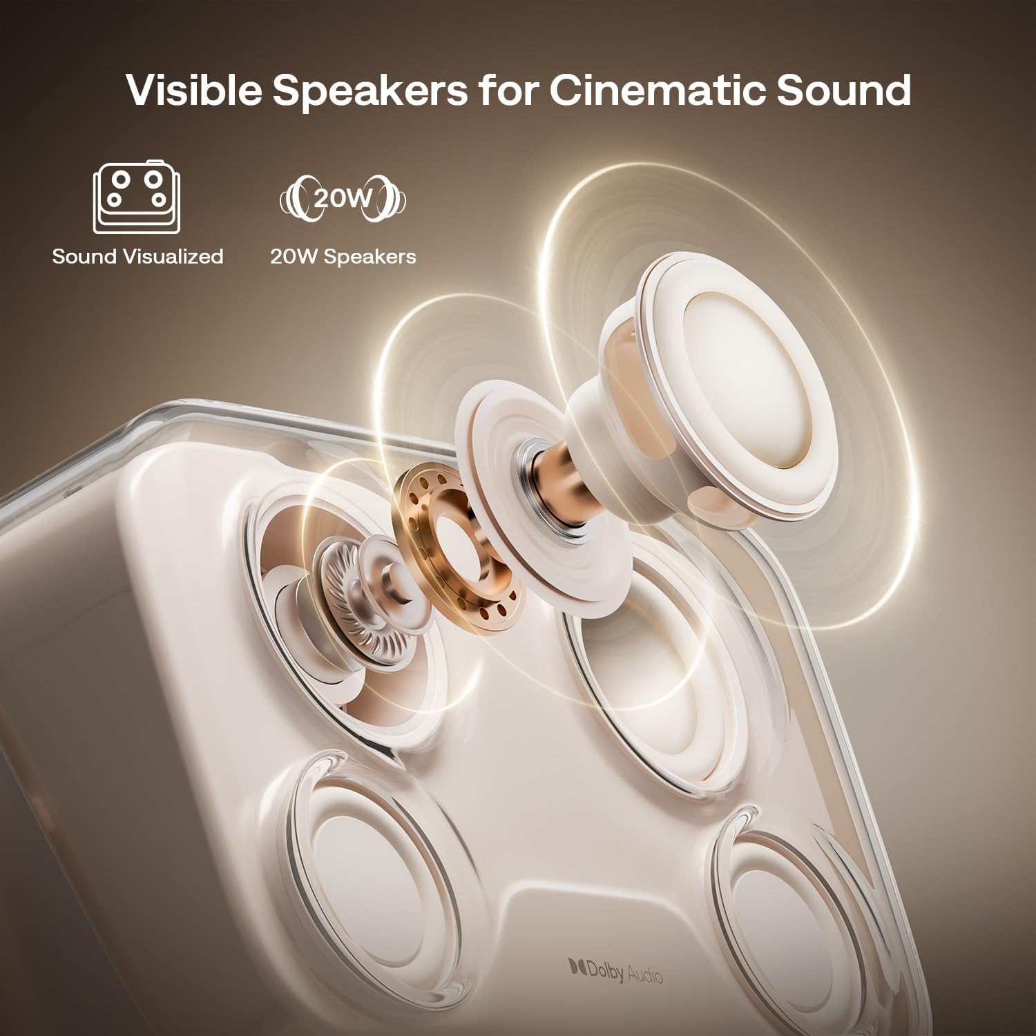 360° Visible Sound & DoIby Audio: 20W high-power speakers with DoIby Audio bring cinema-grade sound to life. The rear-facing Visible Sound design delivers deep bass and crisp highs, turning every movie night into an auditory delight.
