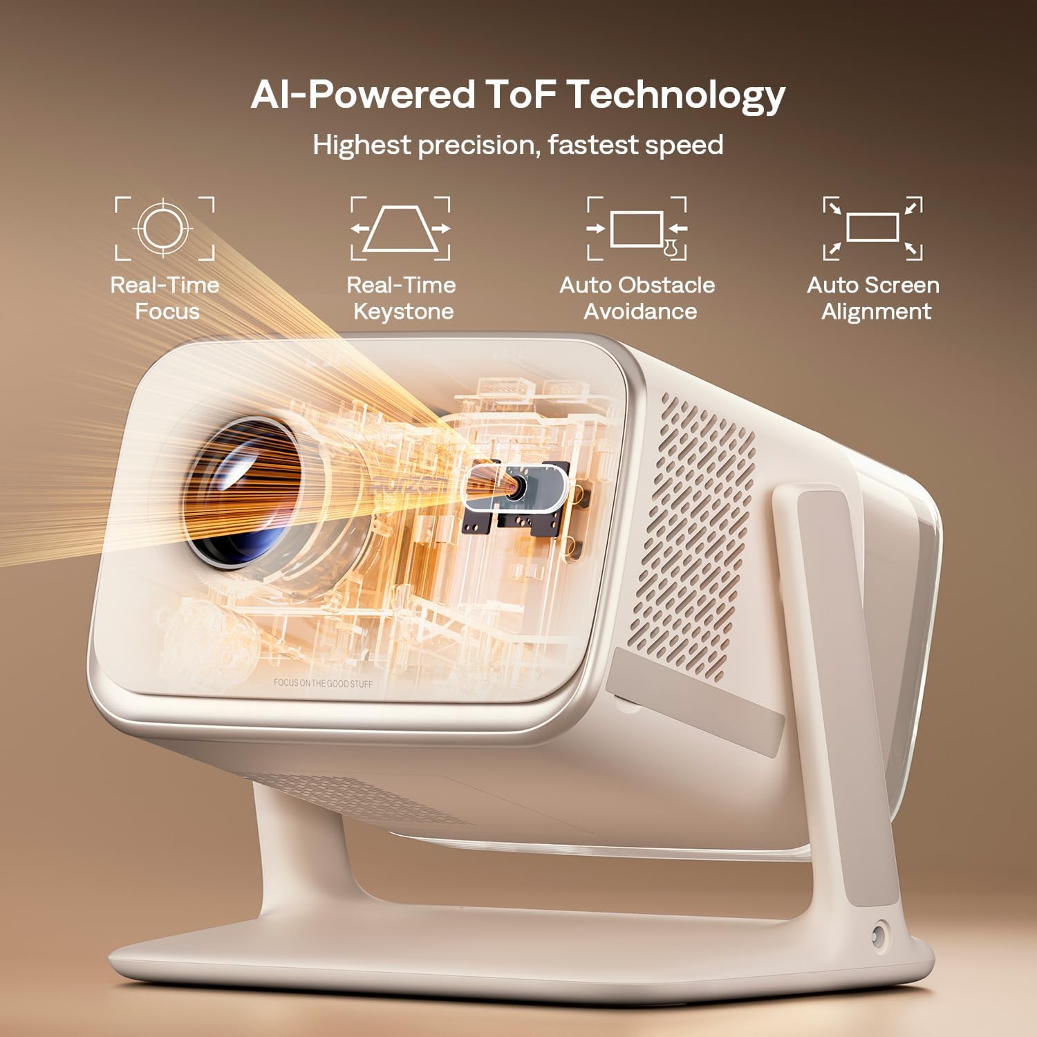 Always in Focus, Ready in 3 Seconds: Powered by advanced ToF technology, BOOM mini 4K projector delivers real-time auto focus and keystone correction in just 3 seconds—far faster than others in its class. Even if moved or bumped, it instantly readjusts, keeping visuals sharp and your experience uninterrupted. Ensure an immersive viewing experience.