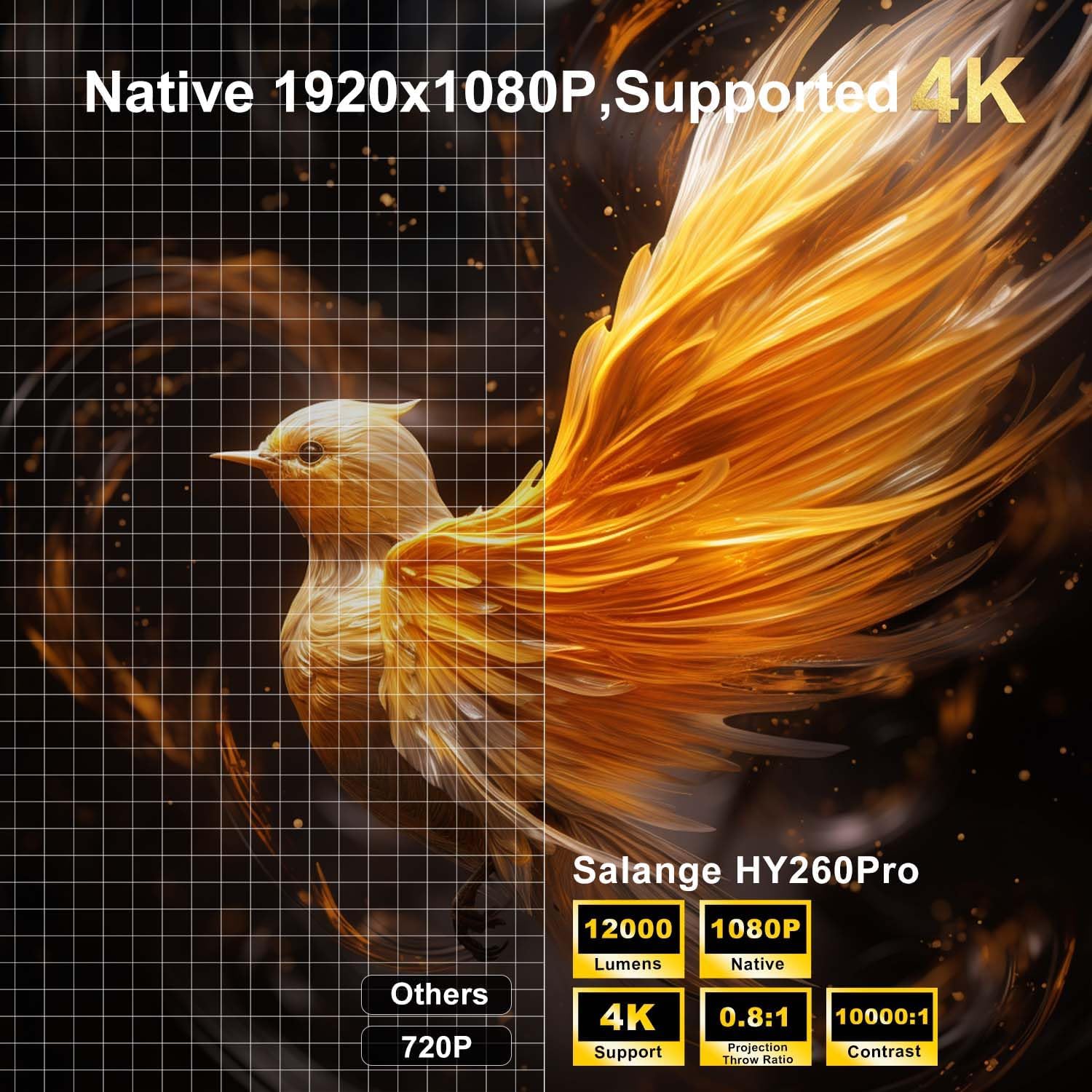 [ Auto Focus / Keystone ] Smart Projector with Wifi and Bluetooth 5.4, SALANGE 1080P Native Projectors 4K, Short Throw Projector w Built in Apps, Android 11, Mini Portable Proyector HY260pro