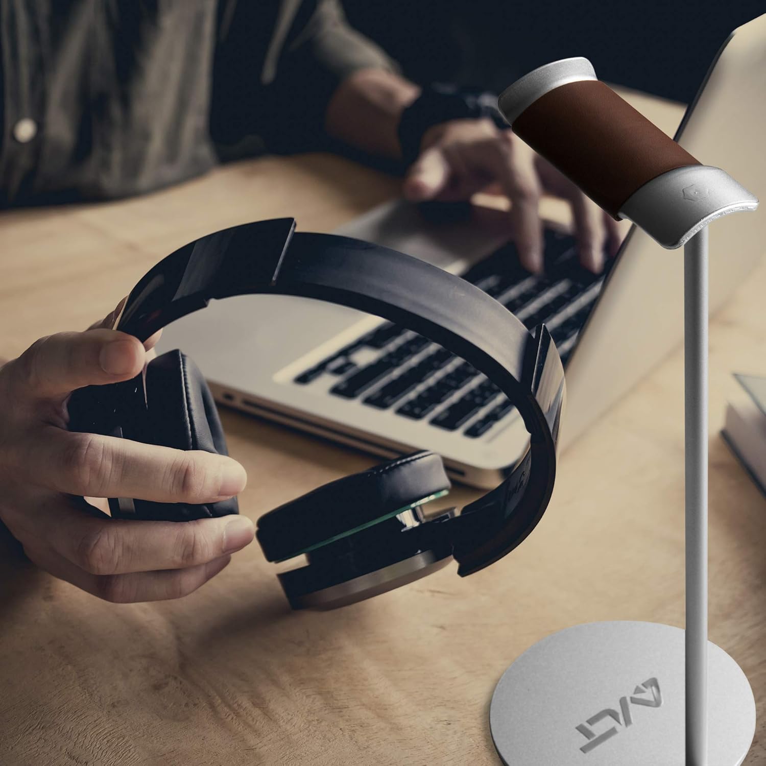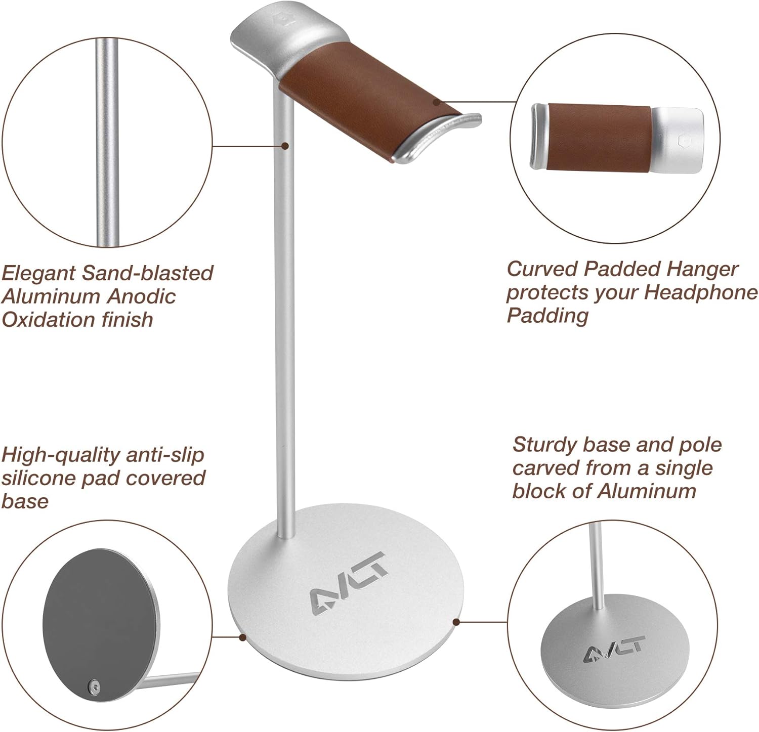 AVLT Universal Slim Aluminum Alloy Desktop Headphone Stand Anti-Slip Headset Display Organizer Hanger Rack Holder – Brown