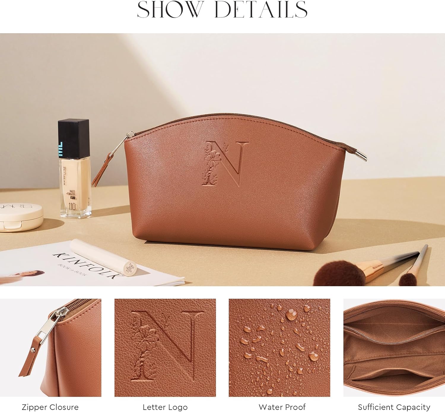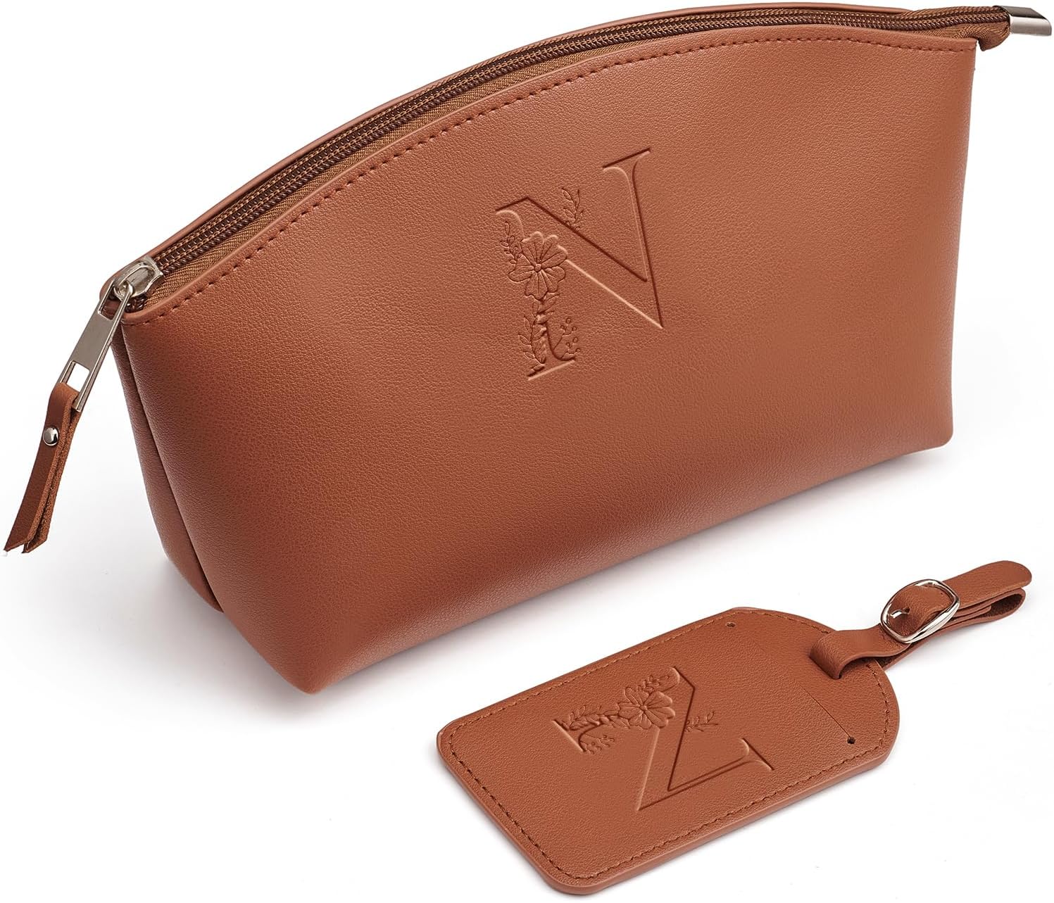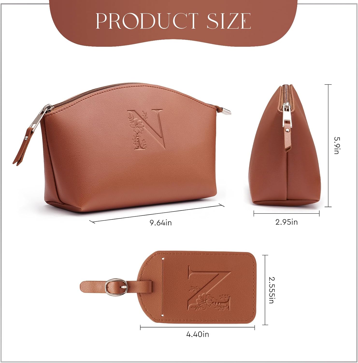 AW BRIDAL Makeup Bags for Women Travel Toiletry Bag with Luggage Tag, Makeup Pouch Cosmetic Pouch Skincare Bag Mother’s Day Gift Wedding Gifts Birthday Gifts for Women, Letter N