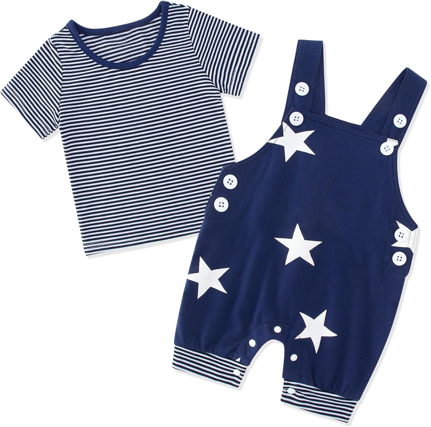 Baby Boys Clothes Set Summer Newborn Shorts Outfits 2pcs Short Sleeve T-shirt Top + Short Overalls