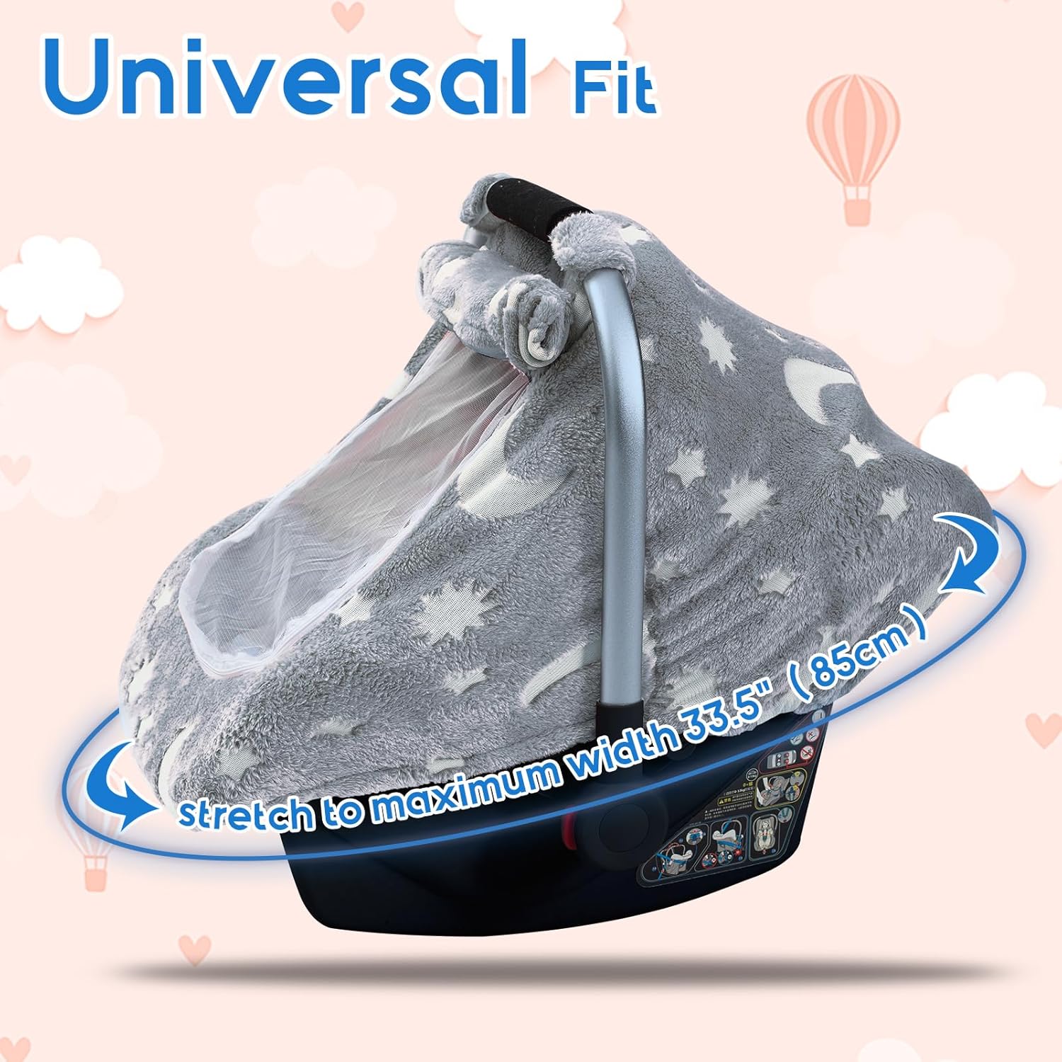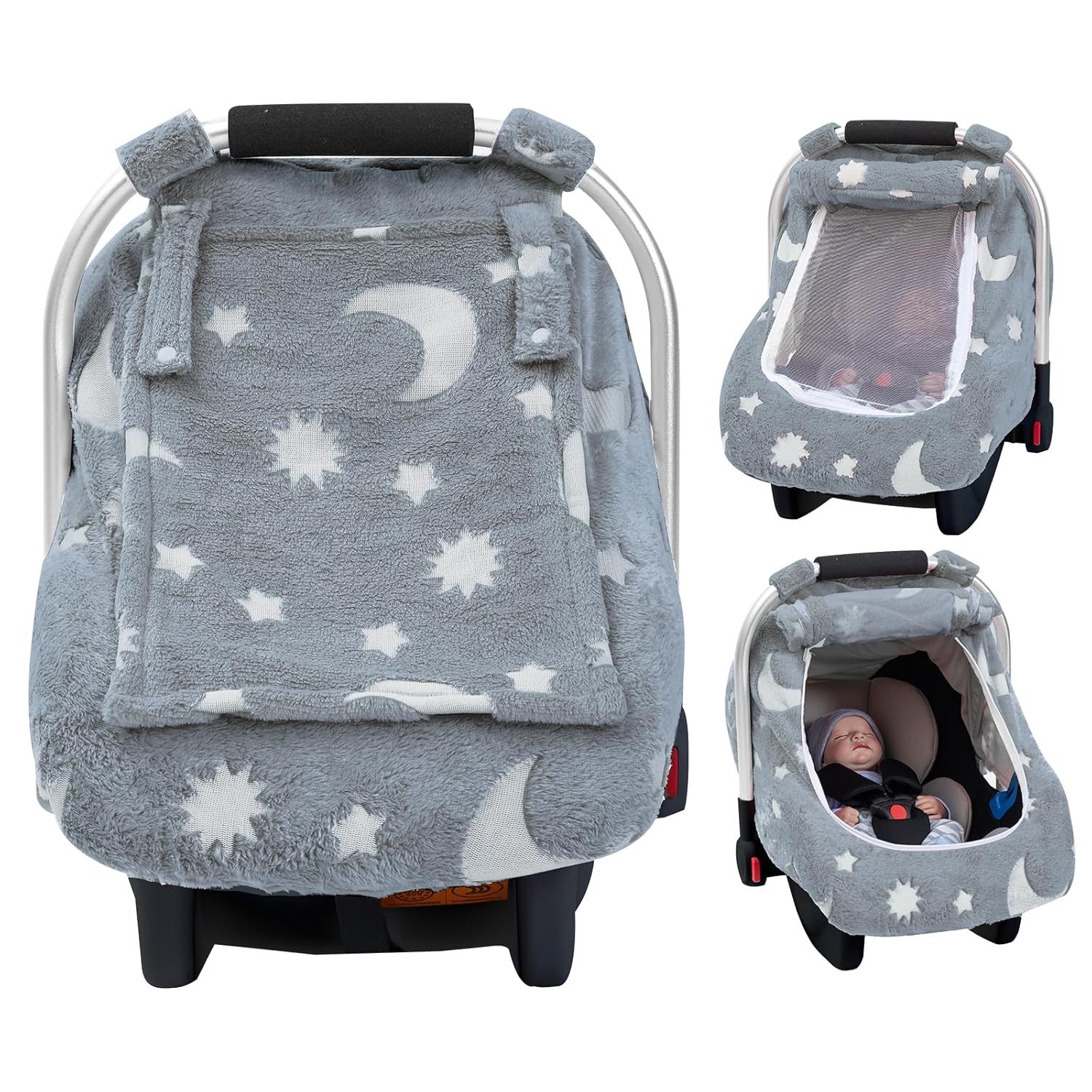 Baby Car Seat Cover, Carseat Covers Baby Glow in The Dark, Fleece Plush Infant Car Seat Cover for Girls Boys, Car Seat Canopy with Peep Mesh Windows, Universal Carrier Cover for All Seasons