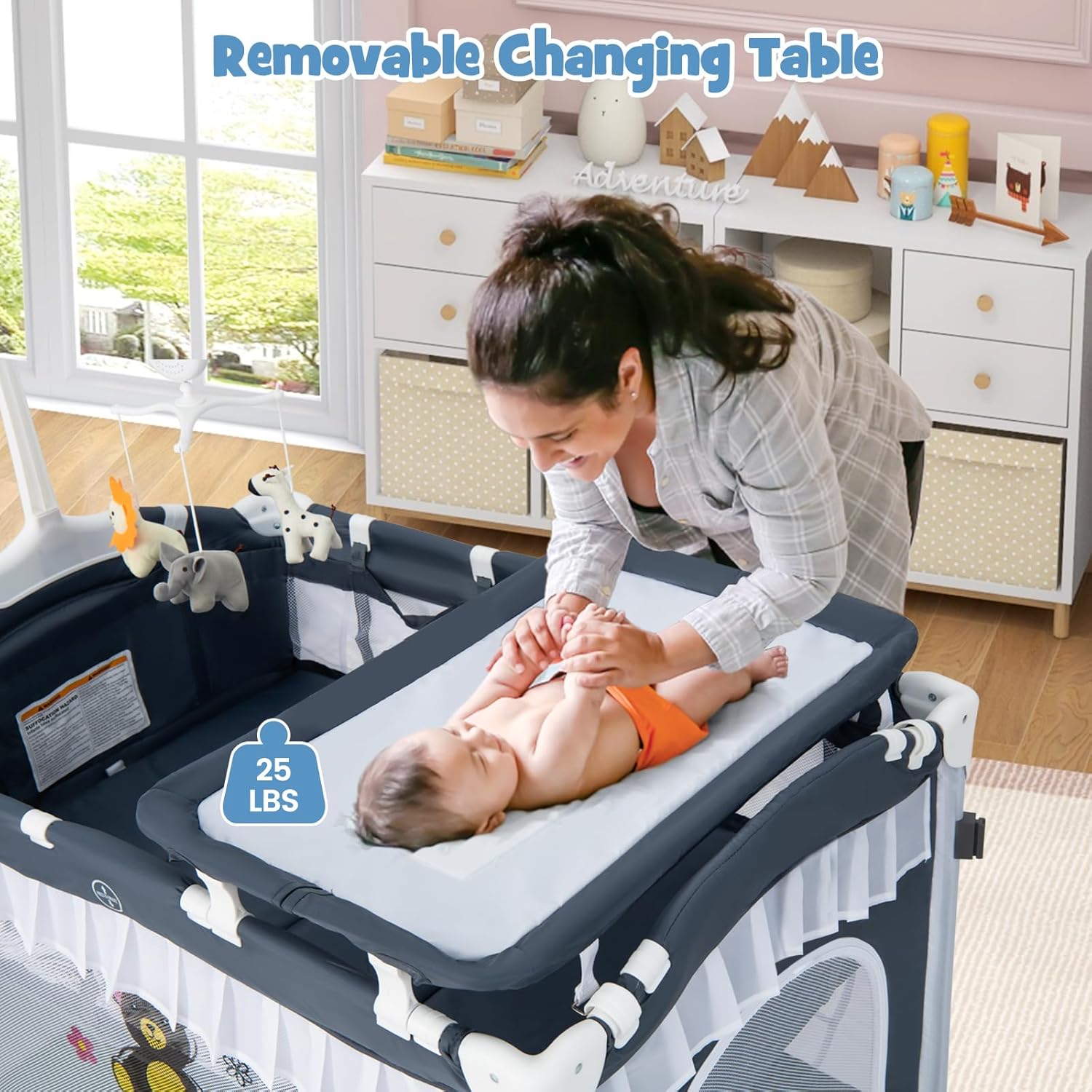 【Strong Structure & Premium Material】Made of high quality oxford fabric and anti-rust iron frame, this portable playard comes with strong loading capacity (Maximum weight capacity of Activity Center : 33 lbs) and ensures long service time which is suitable for kids from 0-36 months old. And the ASTM certification ensures our baby’s safety. The breathable mesh design provides a better visibility for us to observe the baby at any time.