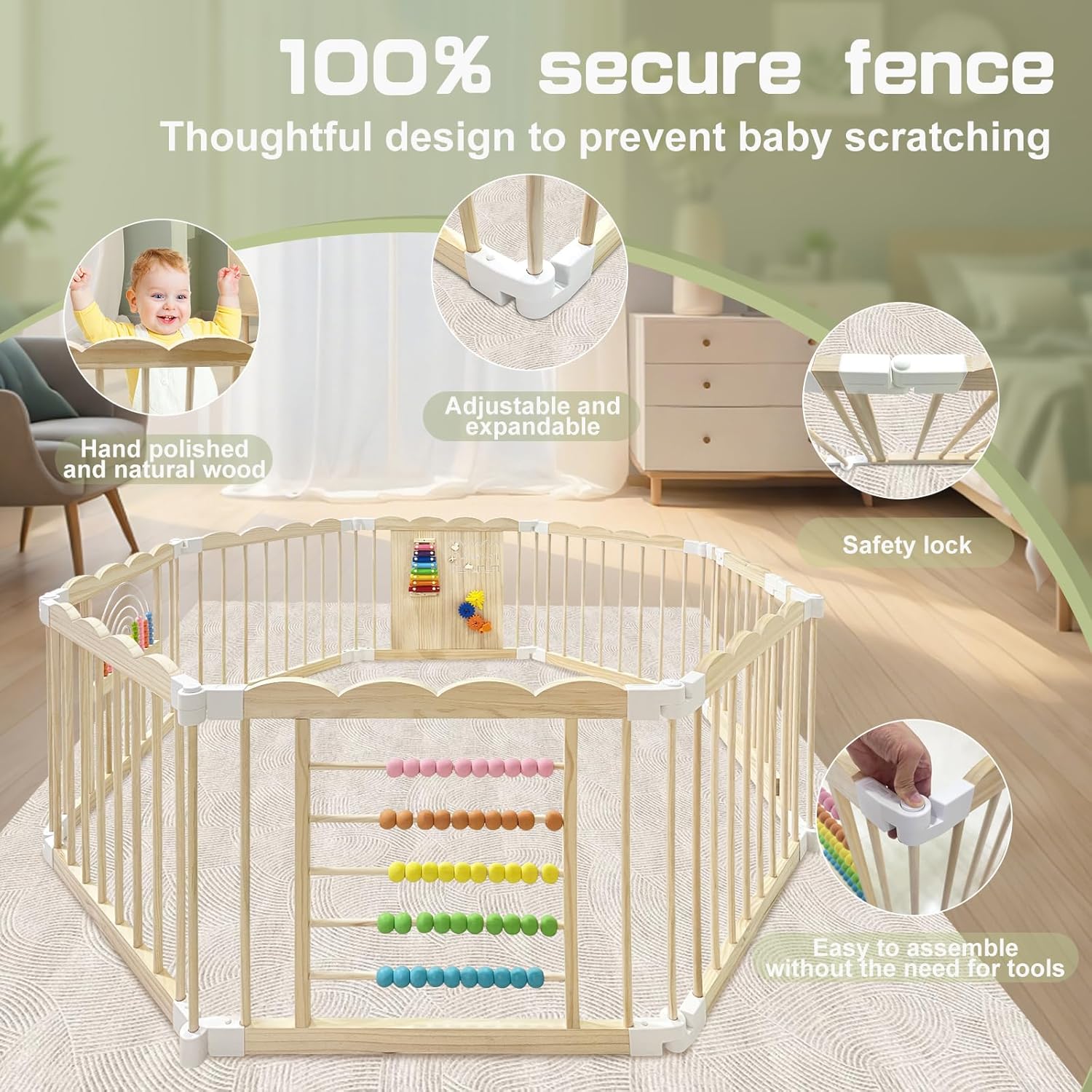 High Quality Materials: The wooden baby playpen is made of natural pine wood and is made of non-toxic, odorless, and bisphenol A free materials. It is carefully selected by hand and professionally polished to ensure the baby play yard is a smooth and spine free environment, providing a safe, healthy, and comfortable environment for your baby