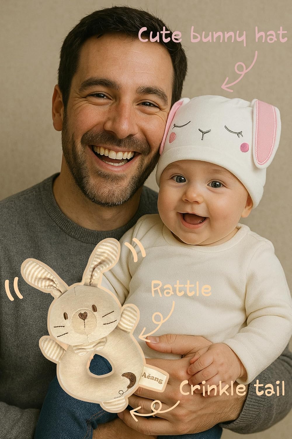 👶 Perfect Newborn Gift – Includes a soft Baby Hat, Rattle Socks, and a fun Baby Rattle, making it an ideal gift for both baby girls and boys.