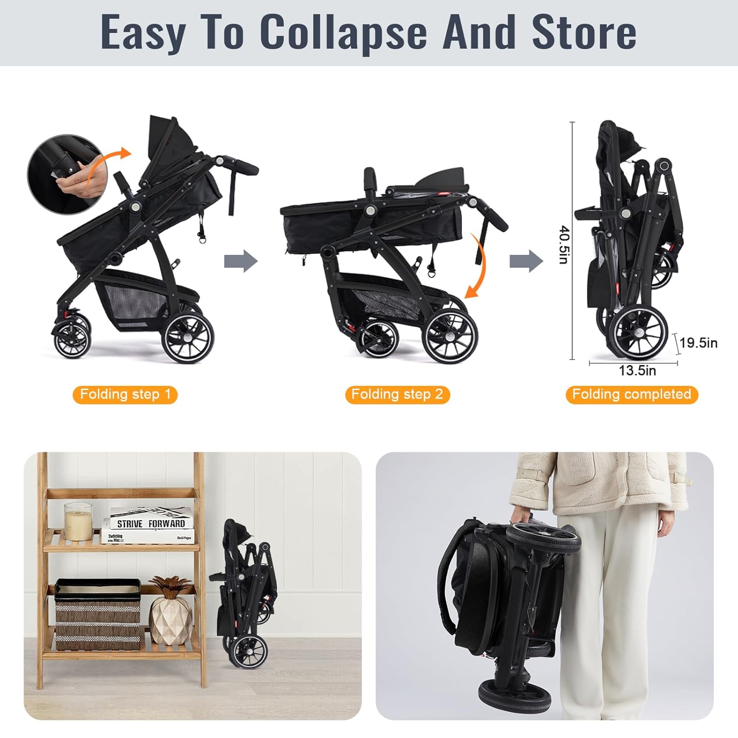 2-IN-1 CONVERTIBLE STROLLER: This baby stroller can switch between basket mode and seated mode. The footrest provides additional support for infant, and the reversible basket pram allows your toddler to face you. The handlebar adjusts to 4 different heights to accommodate parents of various statures.
