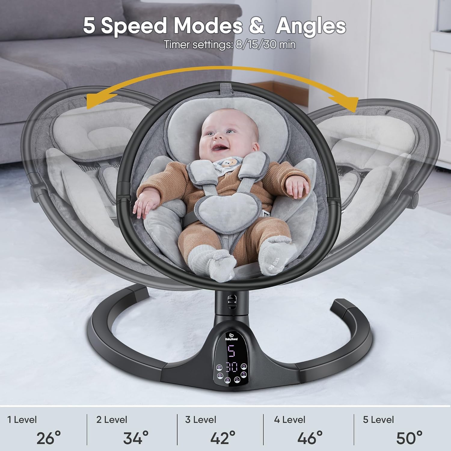 To Soothe Your Baby: Unlike traditional baby swings, the BabyBond baby swing has a MORE PRONOUNCED 5 swing mode, making it easier for your little one to calm down.