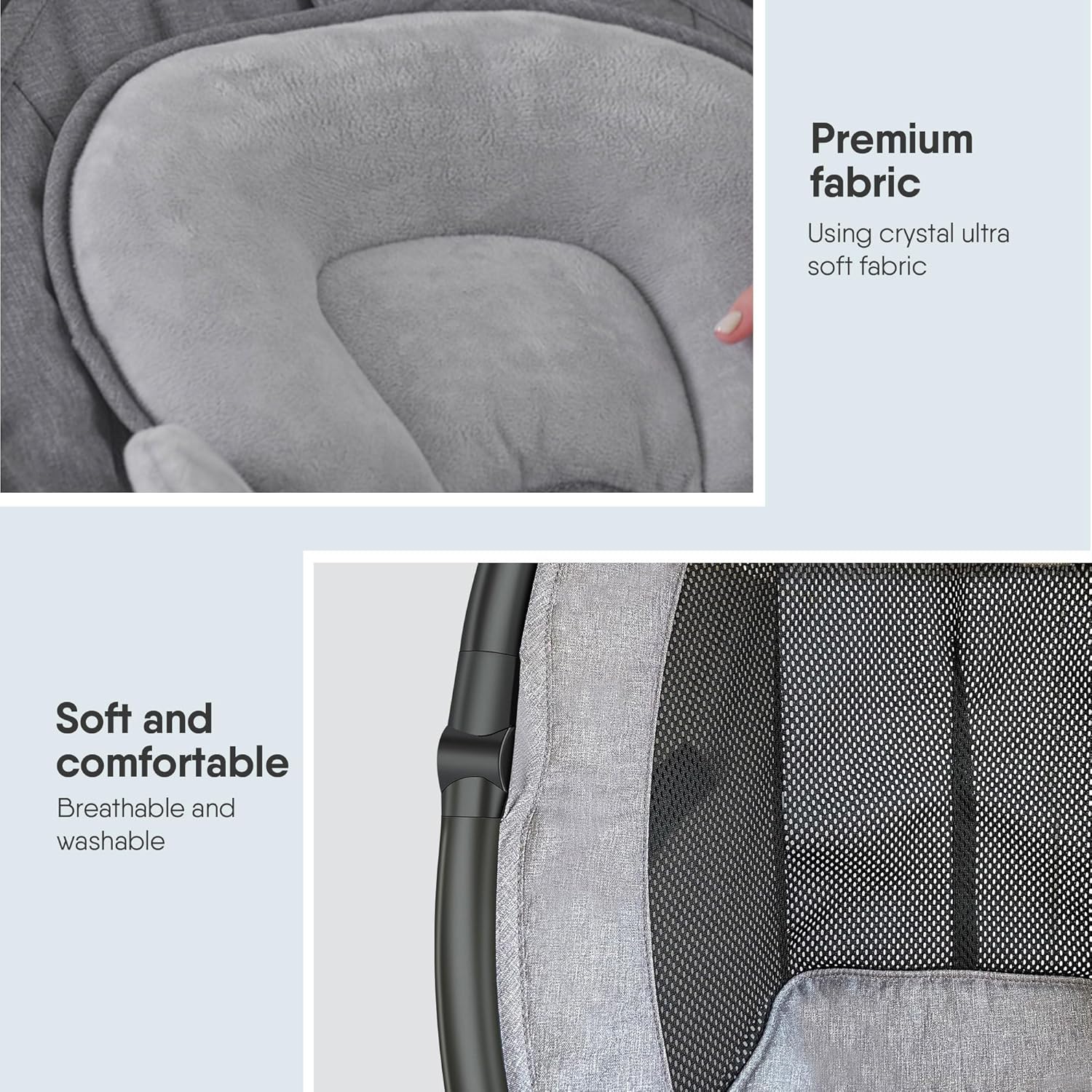 Emulates Mother’s Embrace: Equipped with an upgraded soft baby cushion, the BabyBond baby swing is designed to imitate the mother’s embrace, promoting optimal growth for your baby. The cushion is crafted with high-quality crystal super soft fabric, removable, and washable for easy maintenance