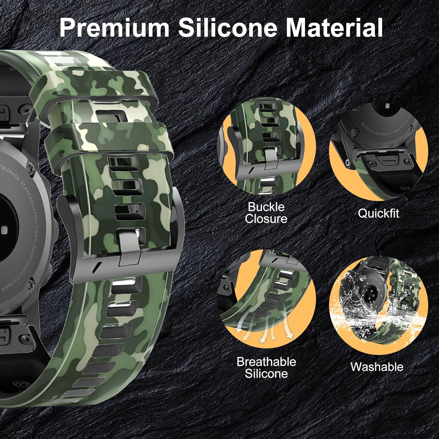 22mm Camouflage Quick Fit Sport Watch Band Replacment for Garmin