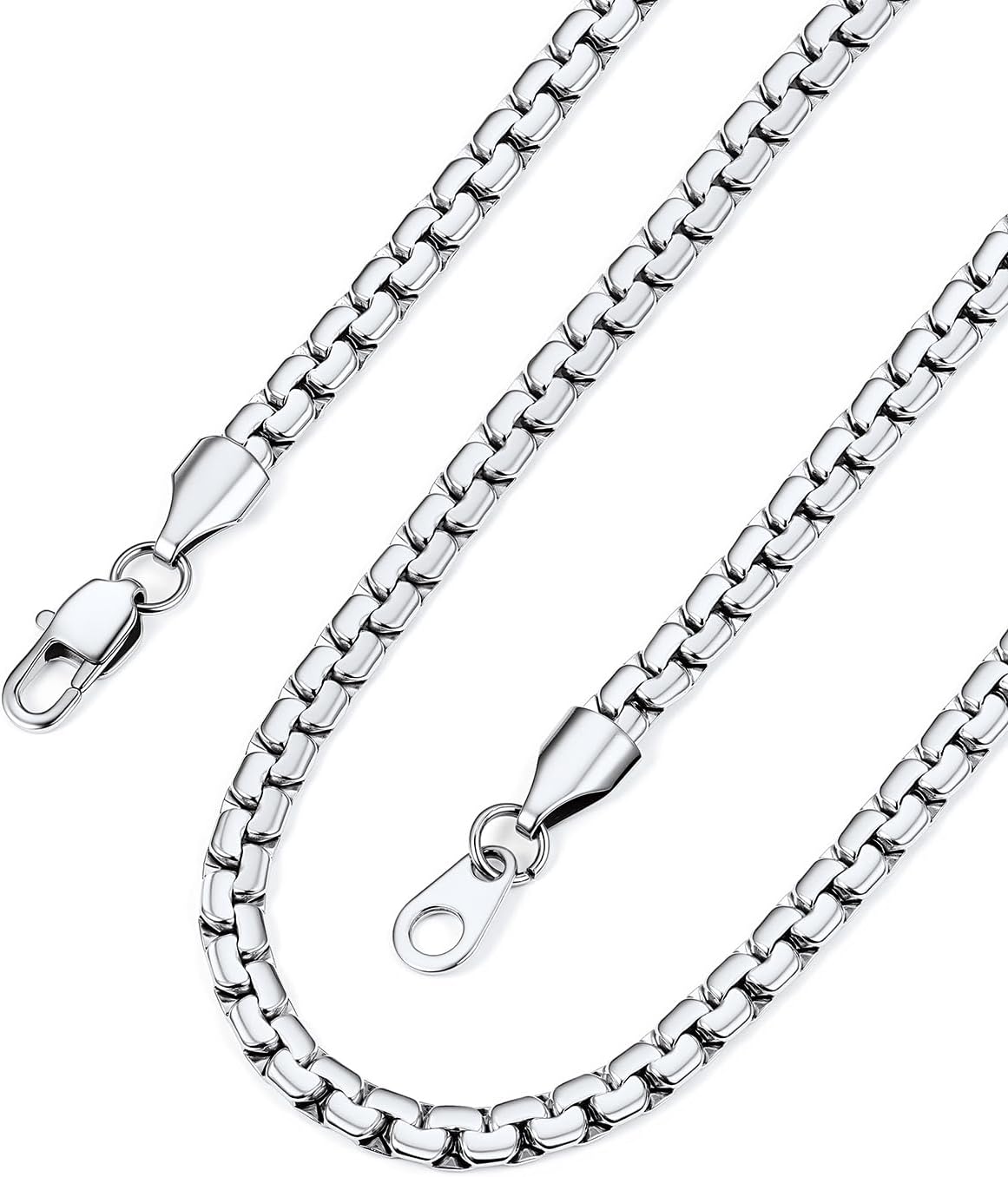 Bandmax Solid Stainless Steel 2MM/4MM/6MM/8MM Flat Box Link Chains for Men Women Silver/Gold/Black Rolo Cable Chain Necklaces Length 14″-30″, Gift Packed