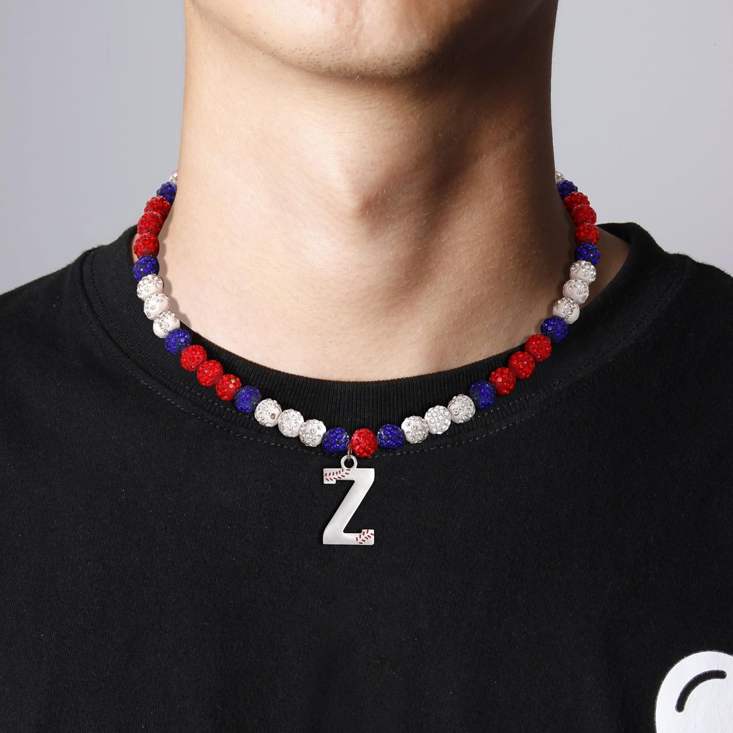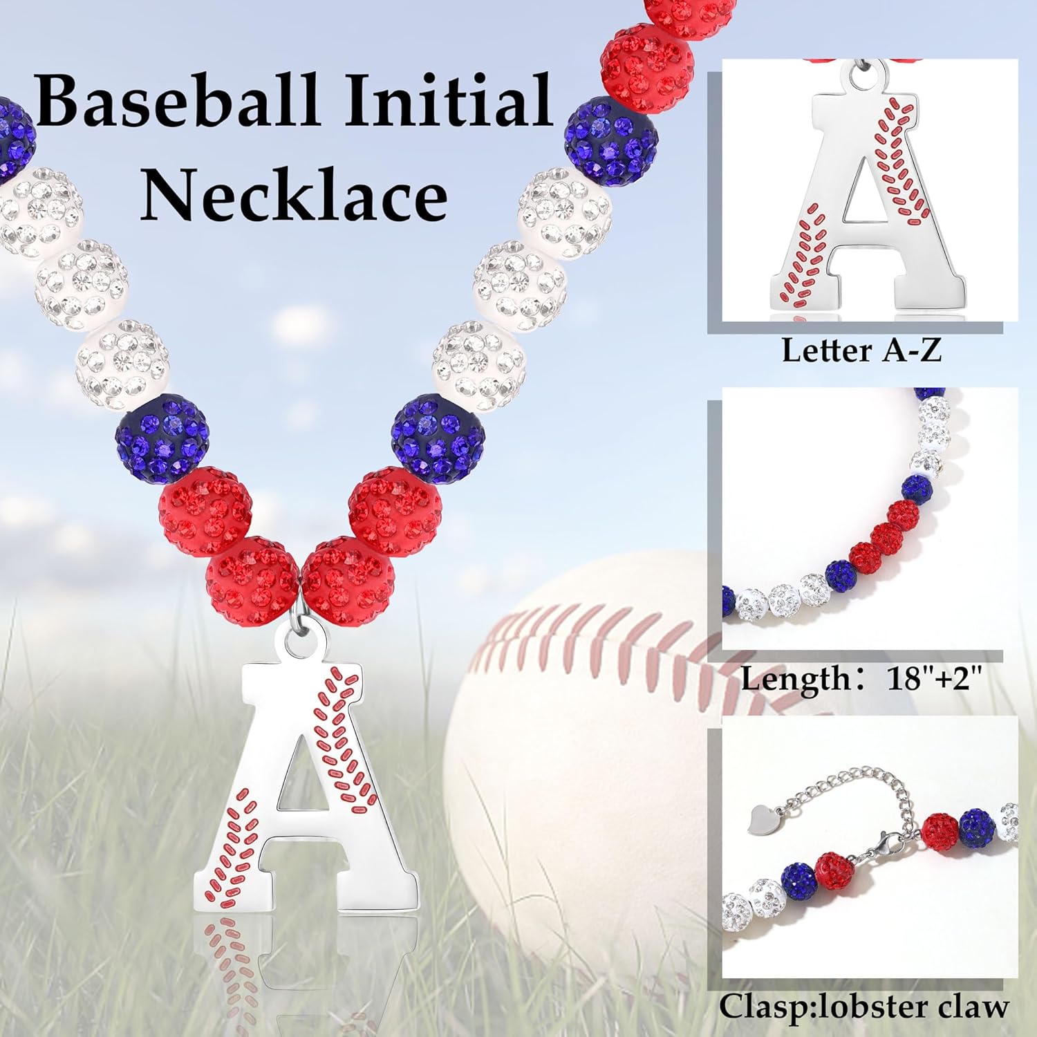 Baseball Necklaces Initial Necklace Baseball Coach Gifts Beaded Adjustable Letter A-Z Bling Baseball Necklace Rhinestone Baseball Accessories Stocking Stuffers for Teens Christmas Jewelry