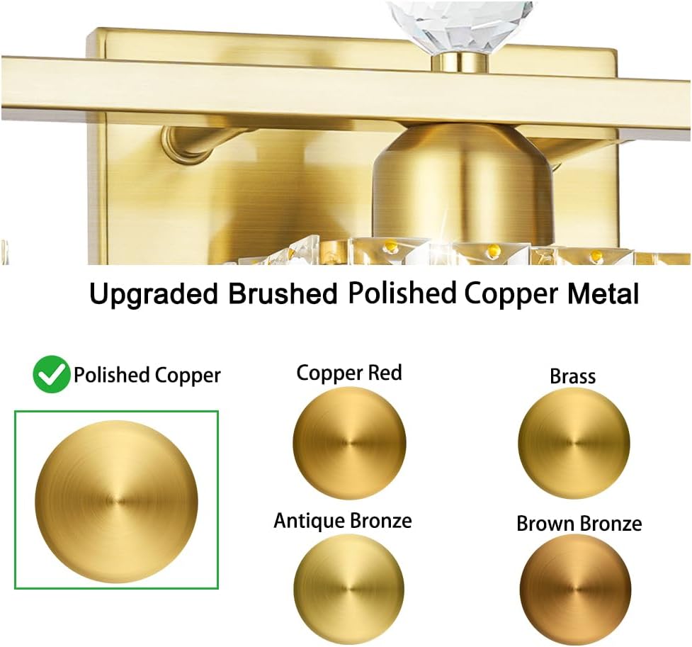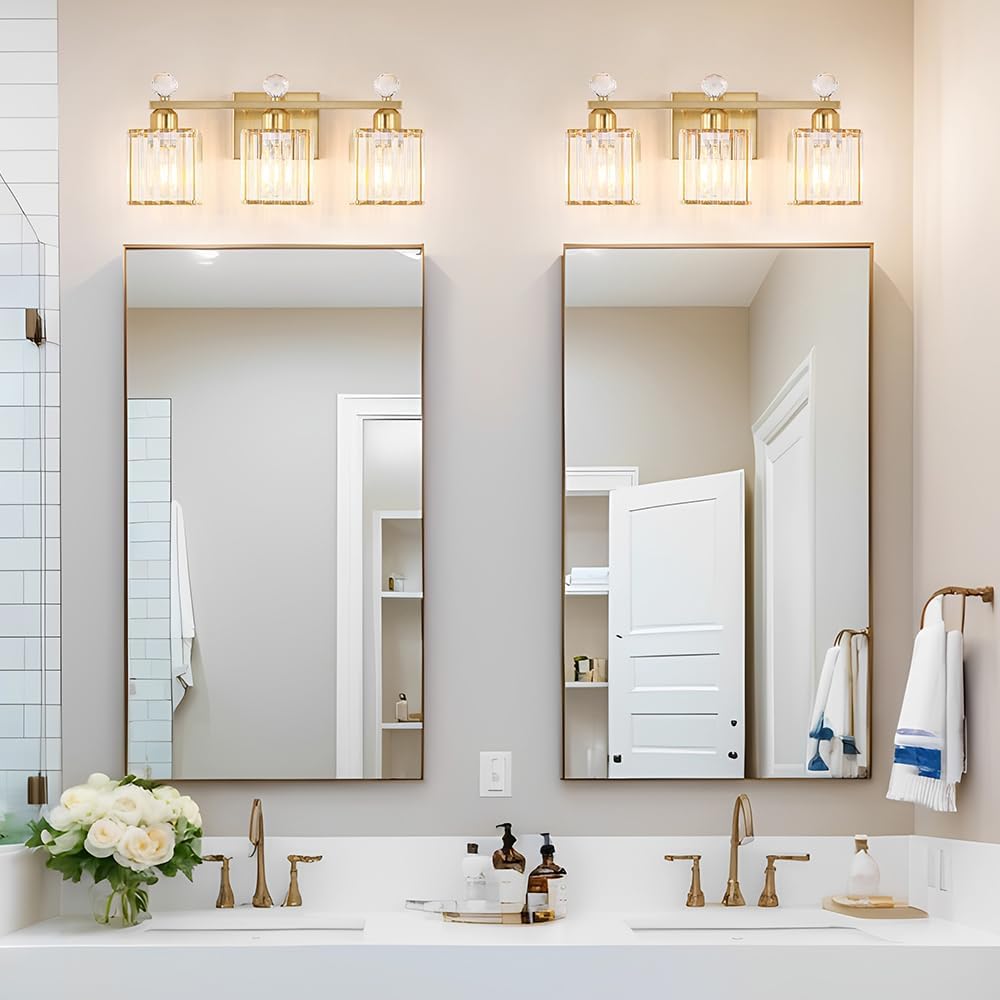 【Luxury Gold & Crystal Elegance】 Elevate your space with modern vanity lights featuring refined gold finish and precision-cut crystal accents. Matching high-end faucet finishes, this design satisfies remodeling projects seeking contemporary aesthetics while adding tangible property value