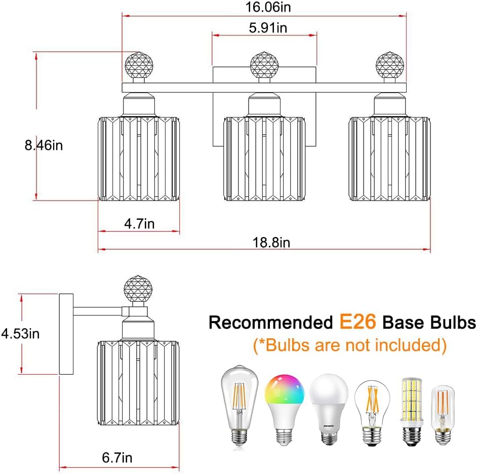 【Flexible Lighting Customization】Utilize standard E26 sockets to install energy-efficient LEDs or dimmable bulbs , allowing personalized brightness from task lighting to ambient glow. Compatible with most smart bulbs for future-ready bathroom lighting solutions that adapt to your lifestyle