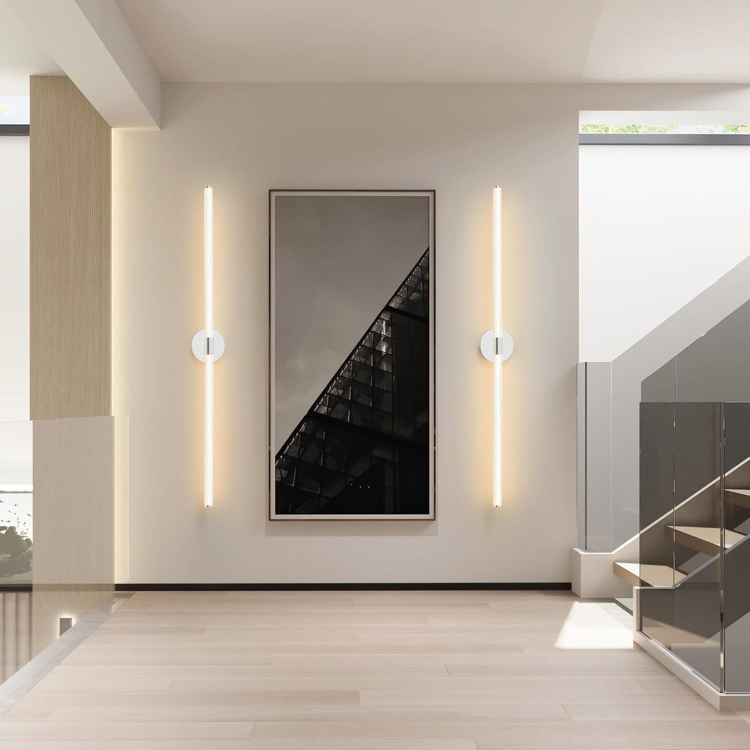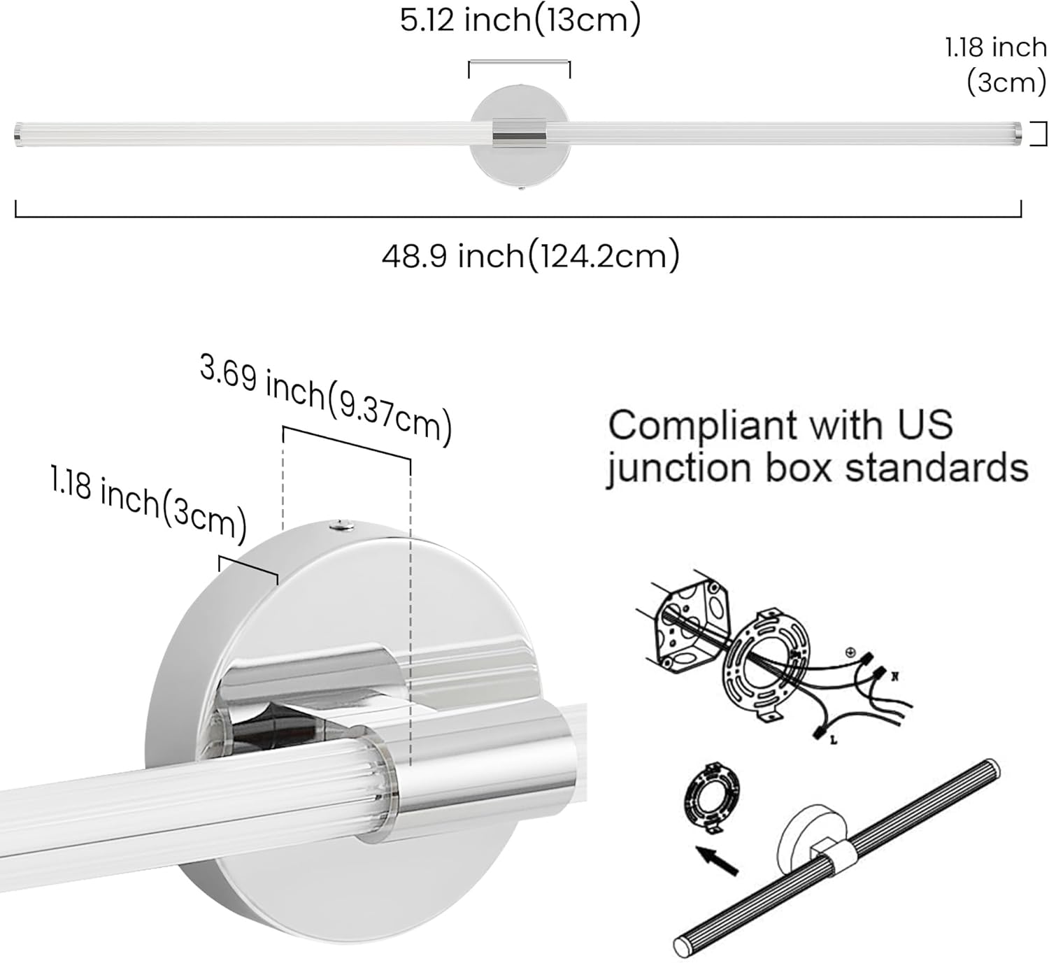 Hardwired &Easy to Install: wall sconce contains all accessories & manual, refer to the manual quickly install horizontally or vertically. Long Vanity Light: 48.9″ (L)x3.9″(to the wall), Backplate: 5.1″x1.2”, shade: 1.2”. Color: 3000K±100K Warm Light. * Please check dimensions before purchase