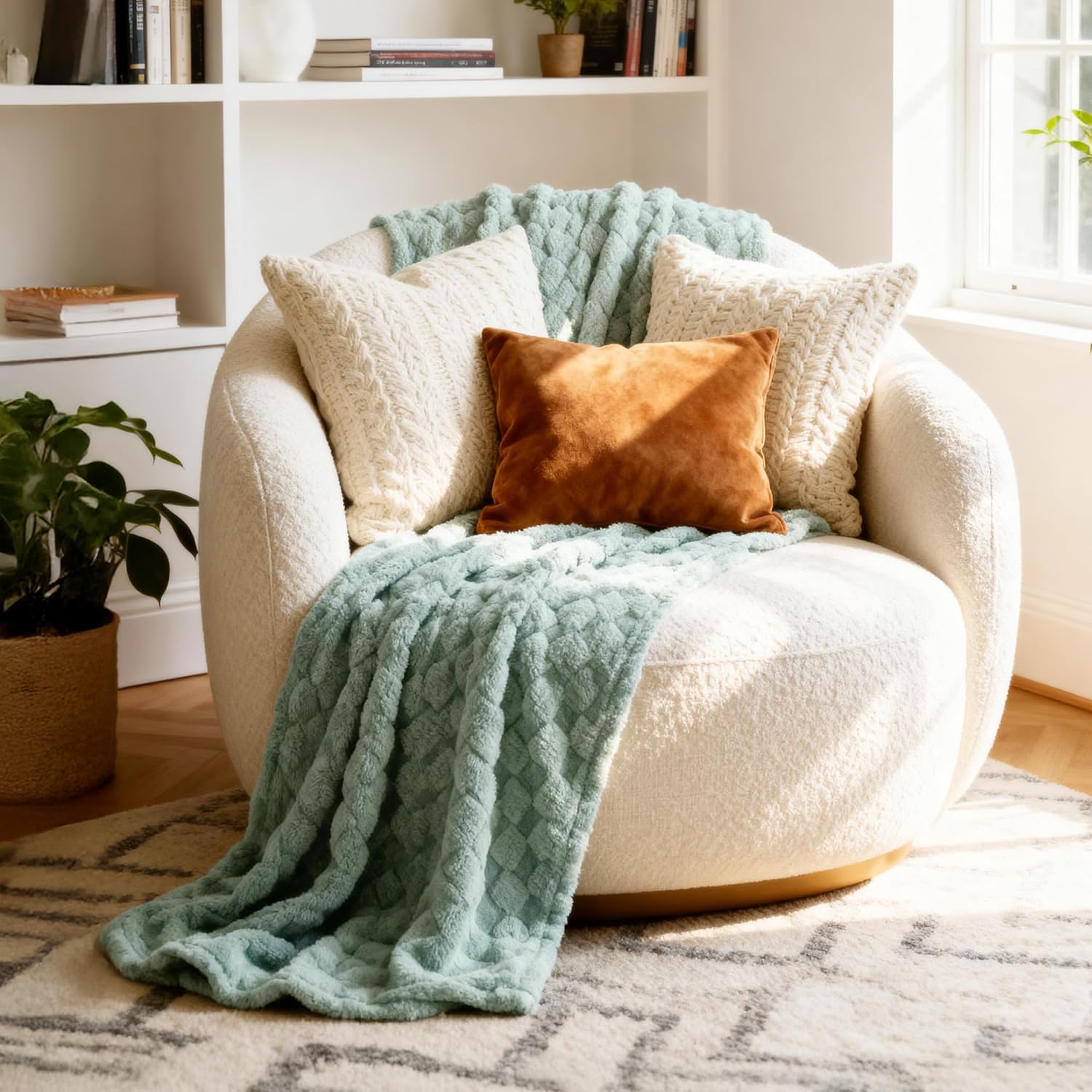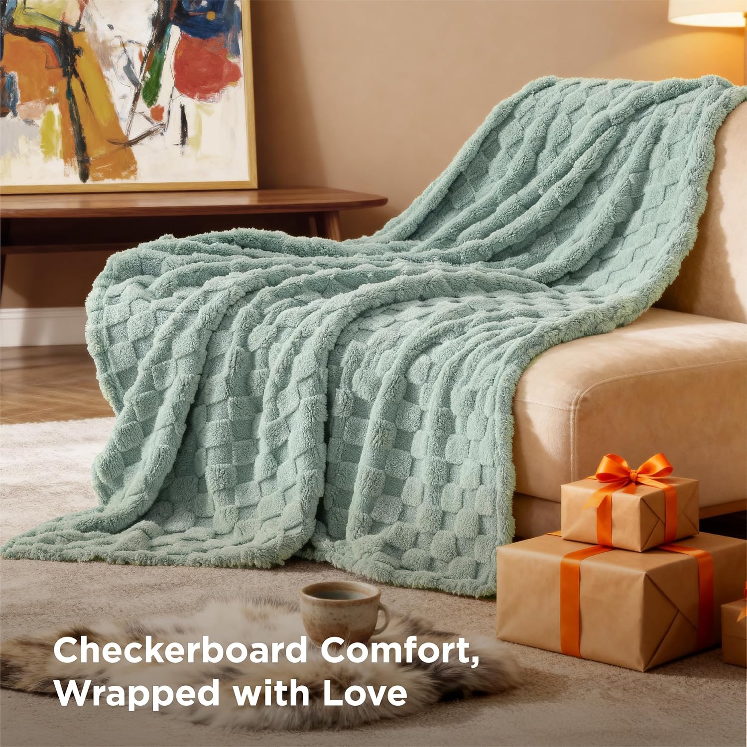 Exquisite Textures: This fuzzy blanket features a timeless checker pattern that adds a touch of modern minimalism to your home decor.