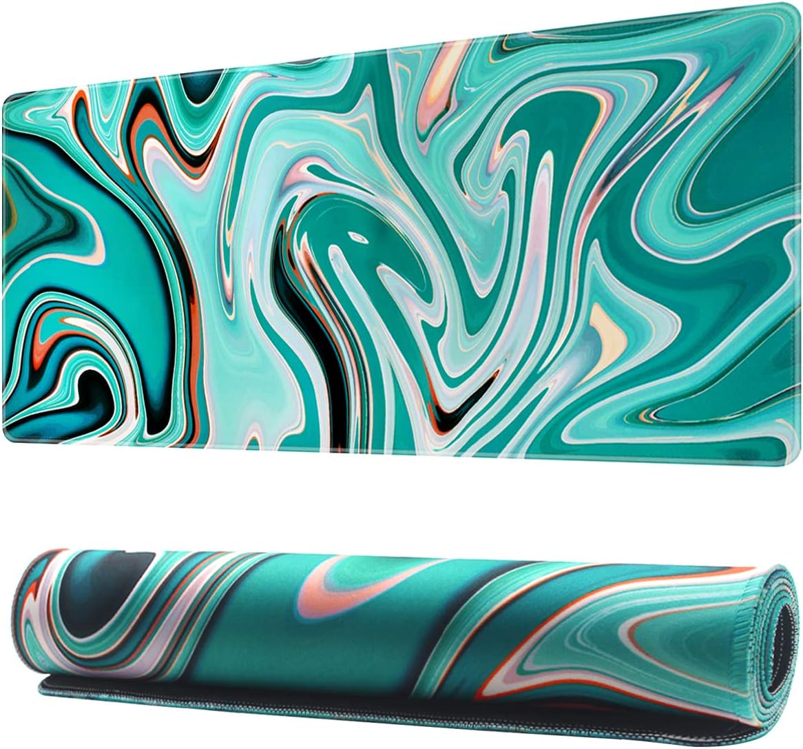 Benvo Extended Mouse Pad with Stitched Edges Extra Large Gaming Mousepads with Non-Slip Rubber Base and Micro-Weave Cloth Desk Mat for Gamer Office Home(35.4×15.7 inch, Marble Green)