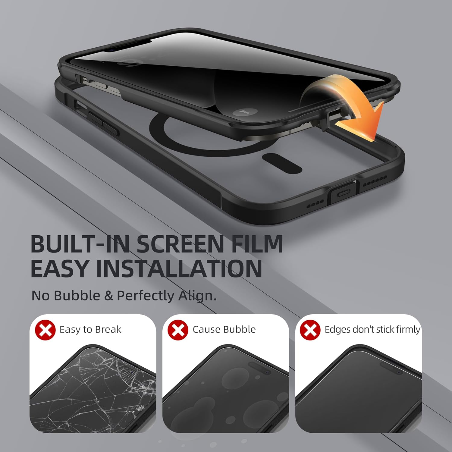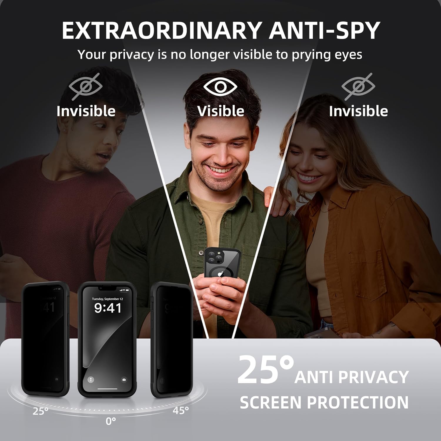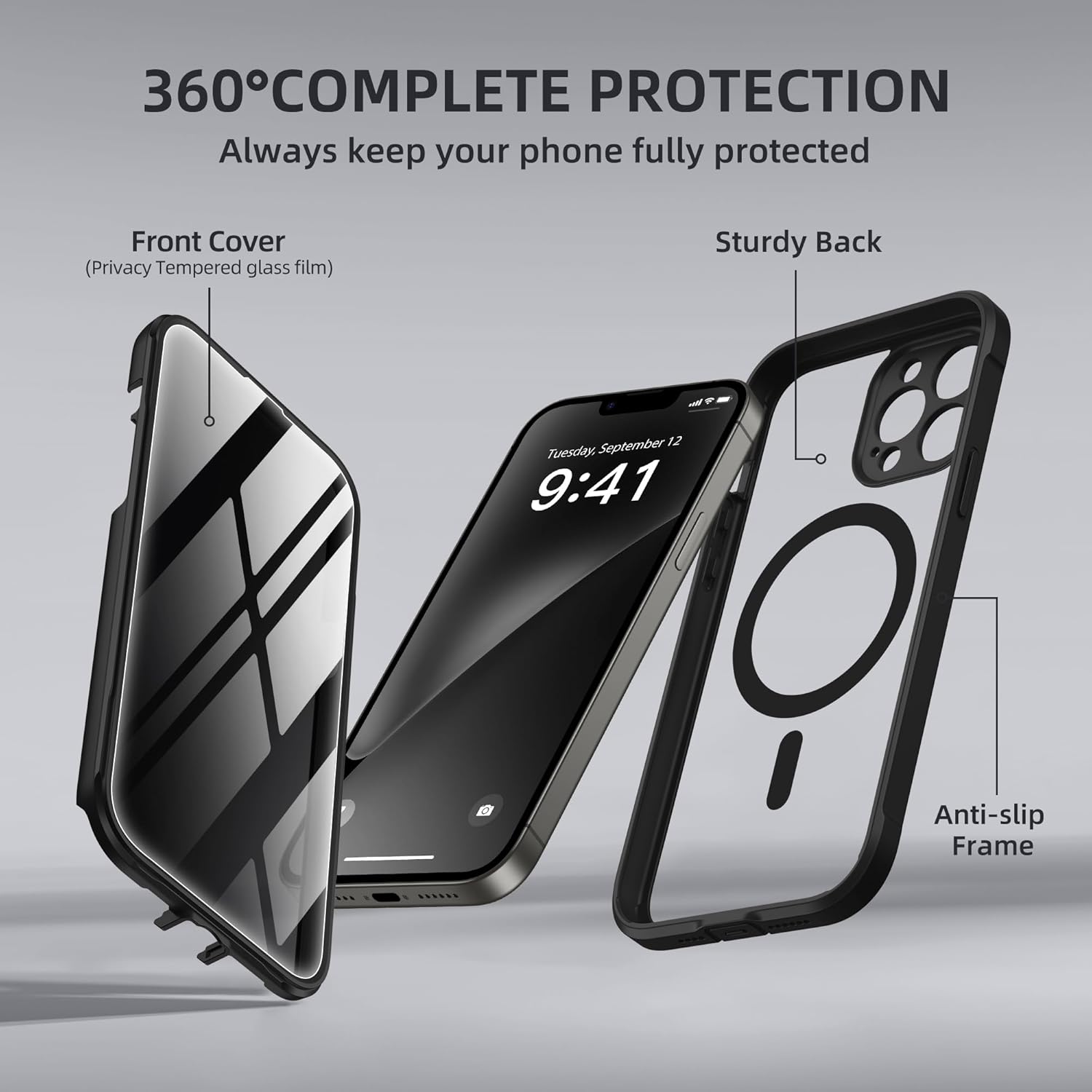 BERFY for iPhone 13 Pro Max Case, Compatible with MagSafe, Built-in Privacy Screen Protector and Camera Protection, Anti-Spy Full Body Shockproof Clear Phone Case for 13 Pro Max 6.7″, Black