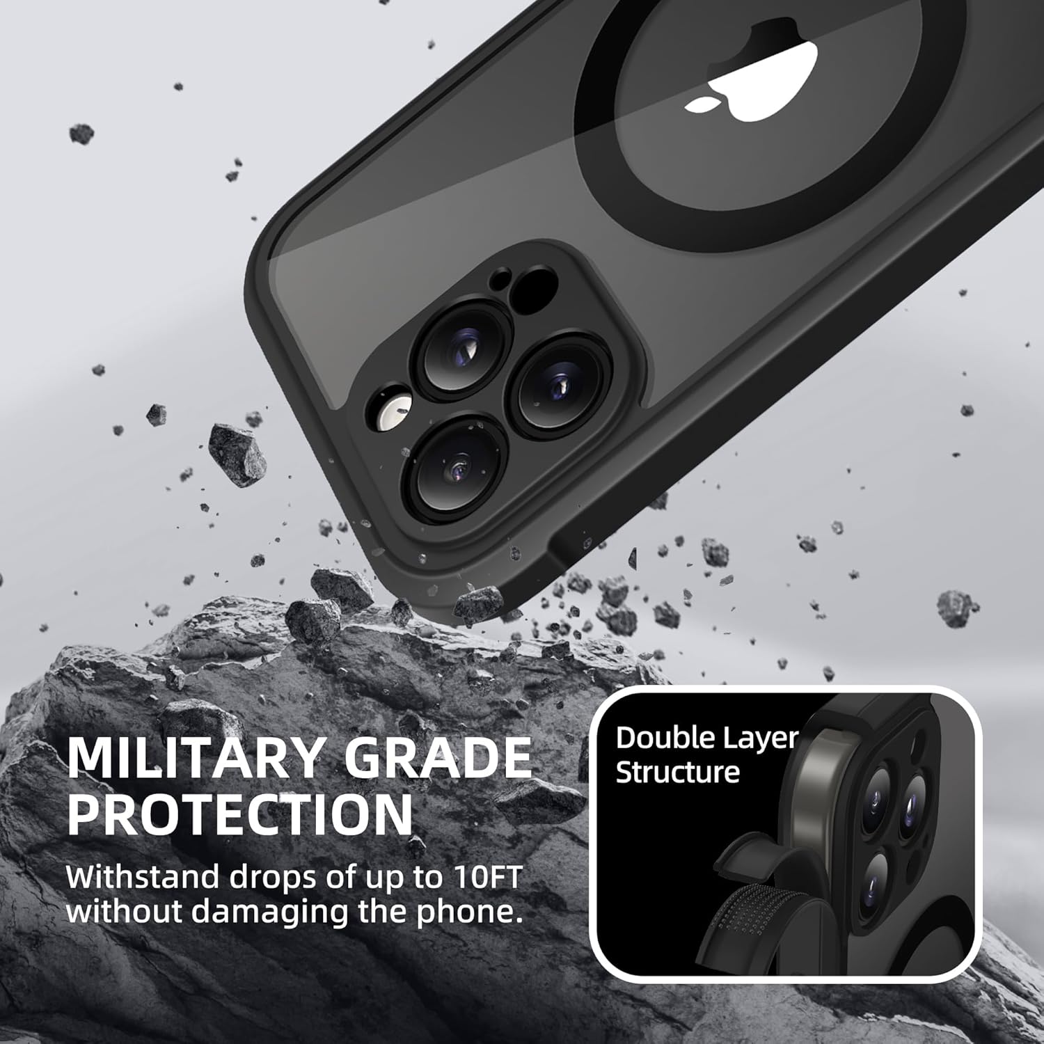 [Strong Magnetic Attraction] This 13 Pro Max magnetic case equipped with powerful magnets for secure, lightning-fast charging. It stays securely attached even during vigorous movement. Fully compatible with MagSafe accessories like magnetic wireless power banks, wallets, car mounts, and more