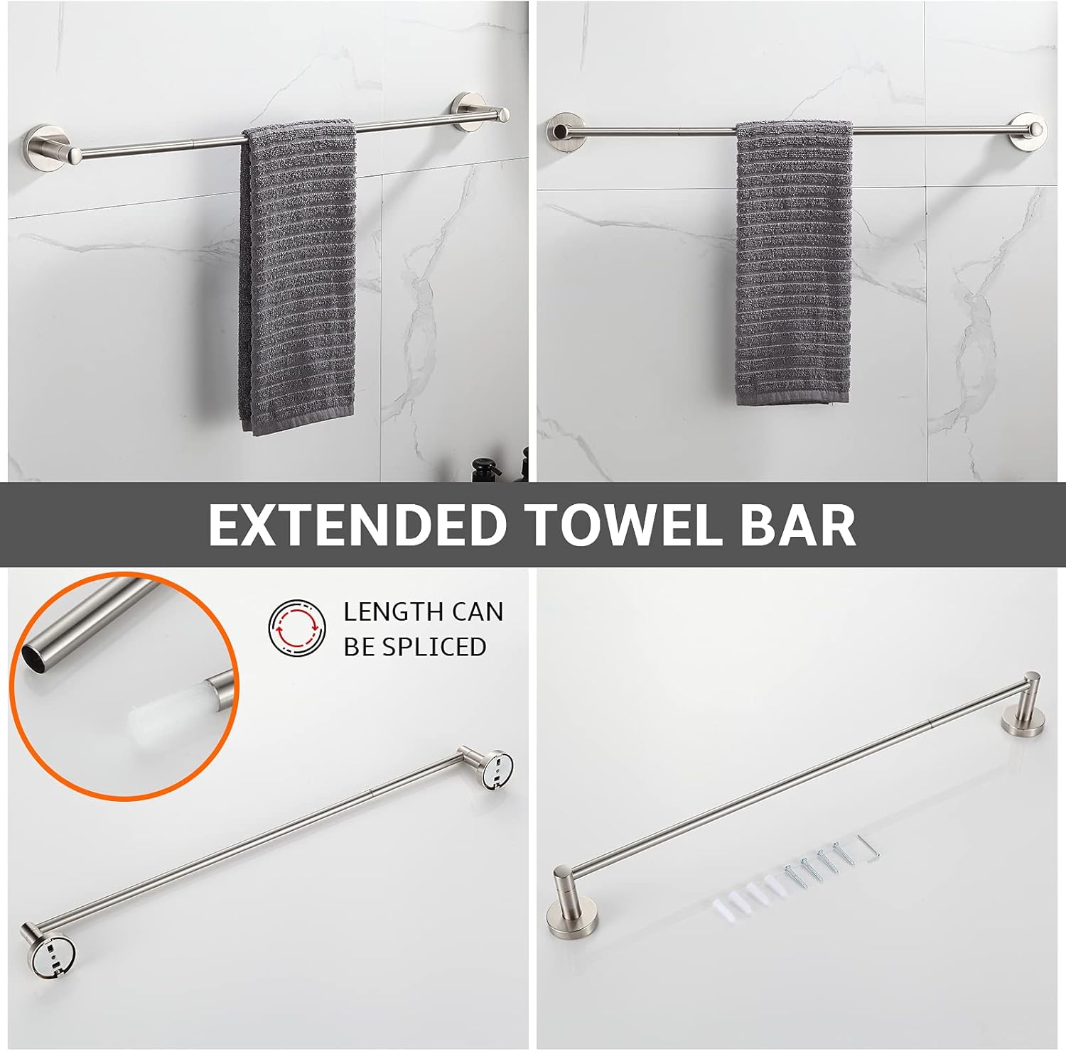 BGL Bathroom Accessory Set Brushed Nickel 4-Pieces Bathroom Towel Rack 24 Inches Adjustable Bathroom Hardware Set