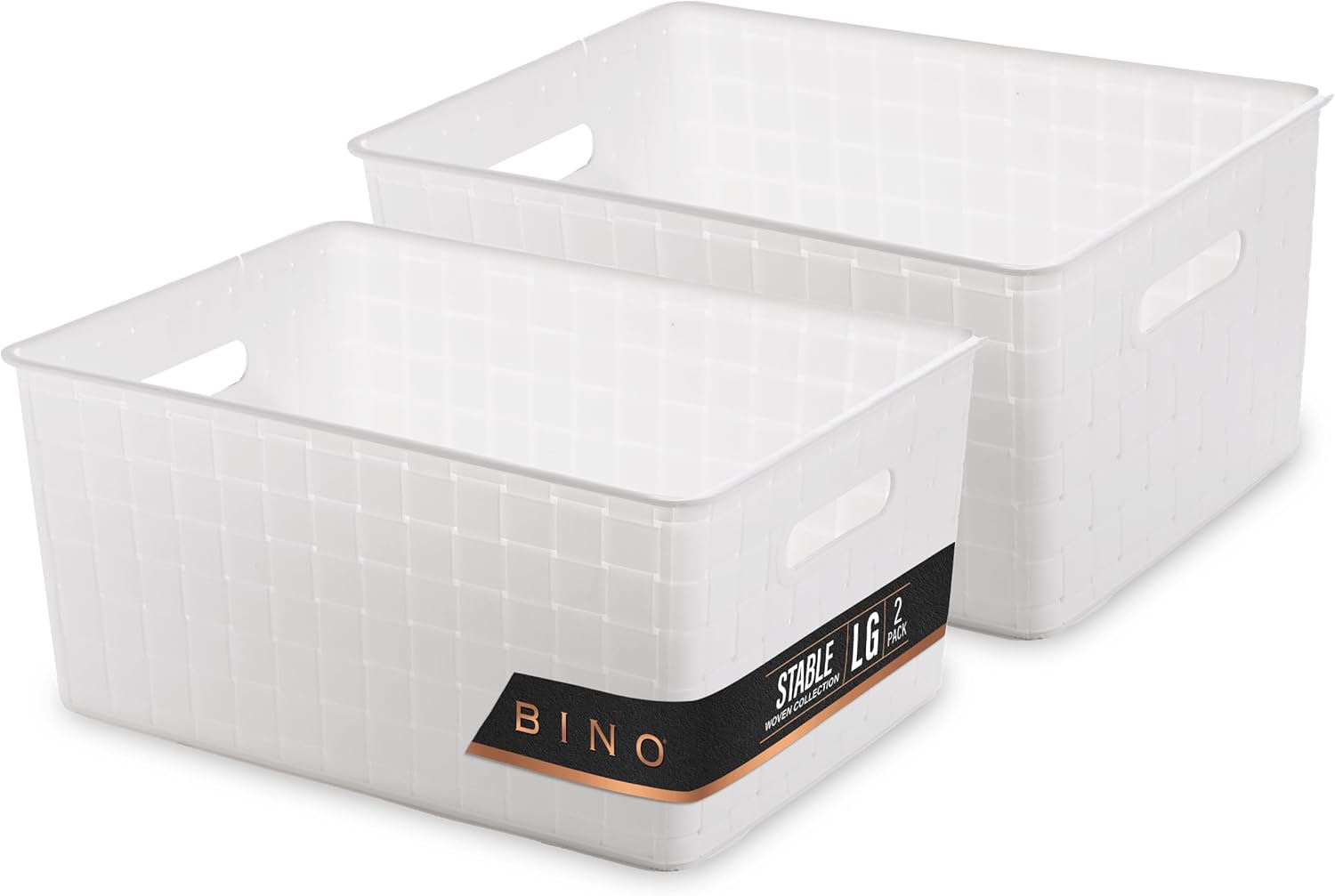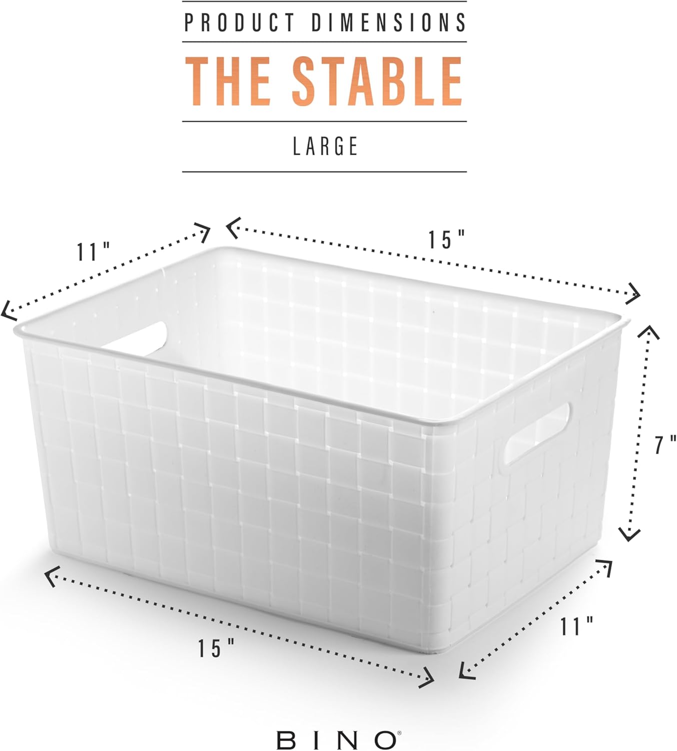 BINO | Plastic Storage Baskets Large – White | THE STABLE COLLECTION | Multi-Use Storage | Rectangular Cabinet Organizer | Baskets For Organizing with Handles | Home Office Organization and Storage