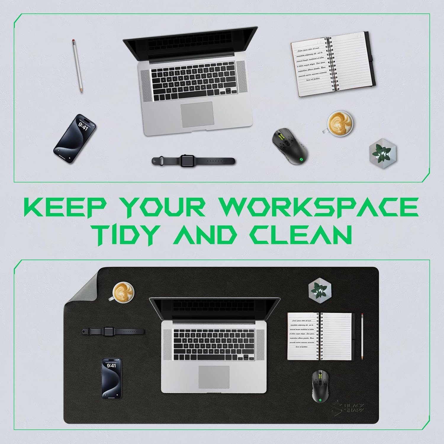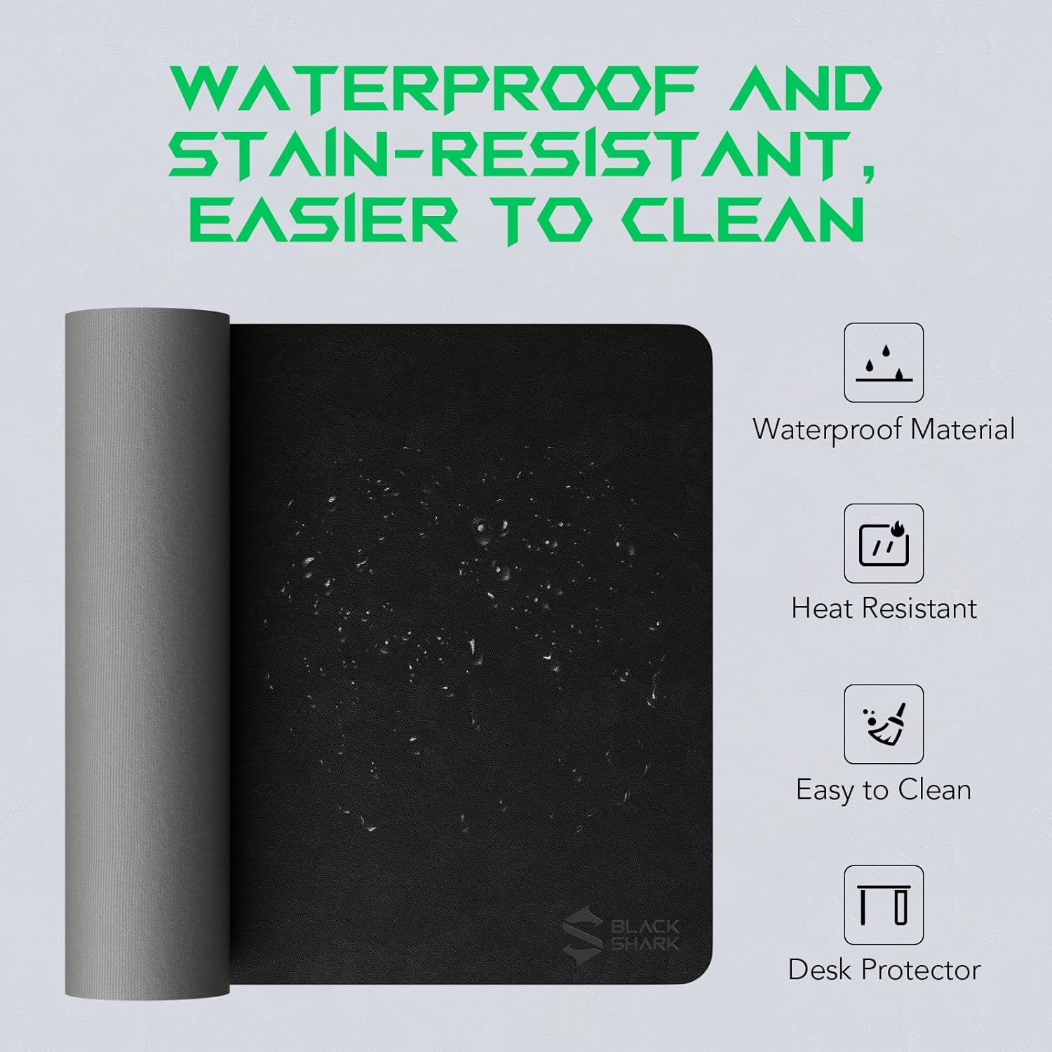 【Waterproof, Durable, Easy to Clean】: Crafted from waterproof and durable PU leather material, the Black Shark Manta P10 is long-lasting and resistant to shrinking and deformation, providing long-term protection for your desktop against scratches, stains, spills, high temperatures, and abrasions. Cleaning is effortless, requiring only a gentle wipe with a damp cloth or tissue.