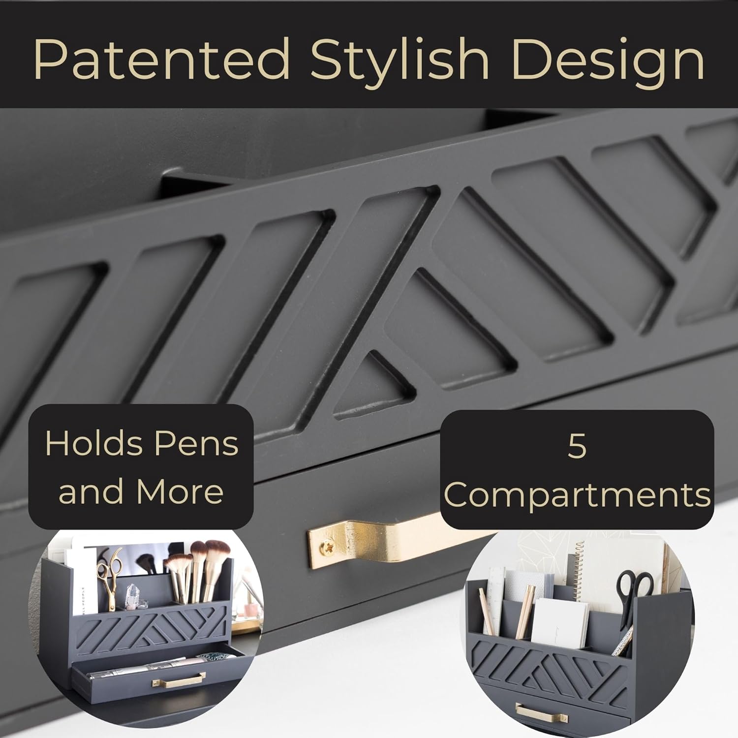 ELEGANT DESIGN: This grey wooden desk organizer with a gold handle brings style and functionality to any desk or workspace.