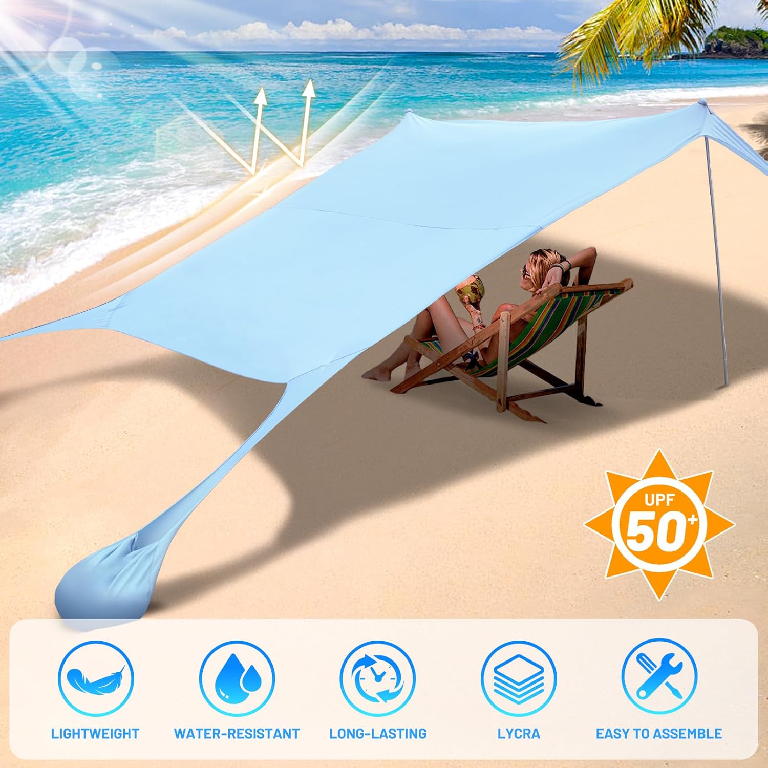 【Advanced Sun Protection】 Designed with the highest quality Lycra fabric and offering UPF 50+ sun coverage and water-resistant function, lightweight beach canopy tent sun shade can shade your outdoor beach holiday. Family beach tent durable materials are not afraid of stretching and tearing