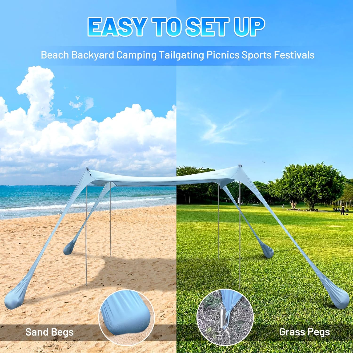【Stable Windproof Performance】 Fill the sandbag with sand or stones as much as possible which makes this portable beach sun shade canopy has better wind resistance. You use beach shade tent over sandy beaches, thick grassy areas, or even in rocky camping spots