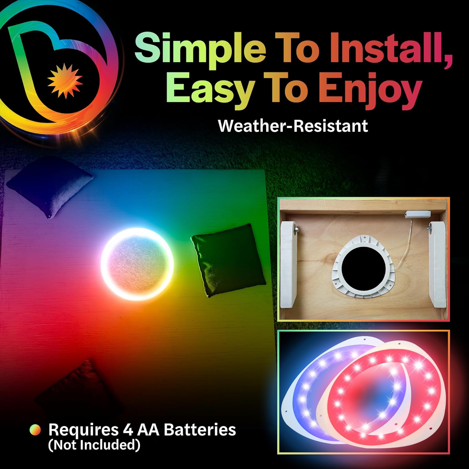 WEATHERPROOF & DURABLE – Our white LED cornhole lights withstand outdoor conditions. Built to last, these weatherproof lights will keep shining bright through rain, wind, or any elements, ensuring continuous illumination for your cornhole games.