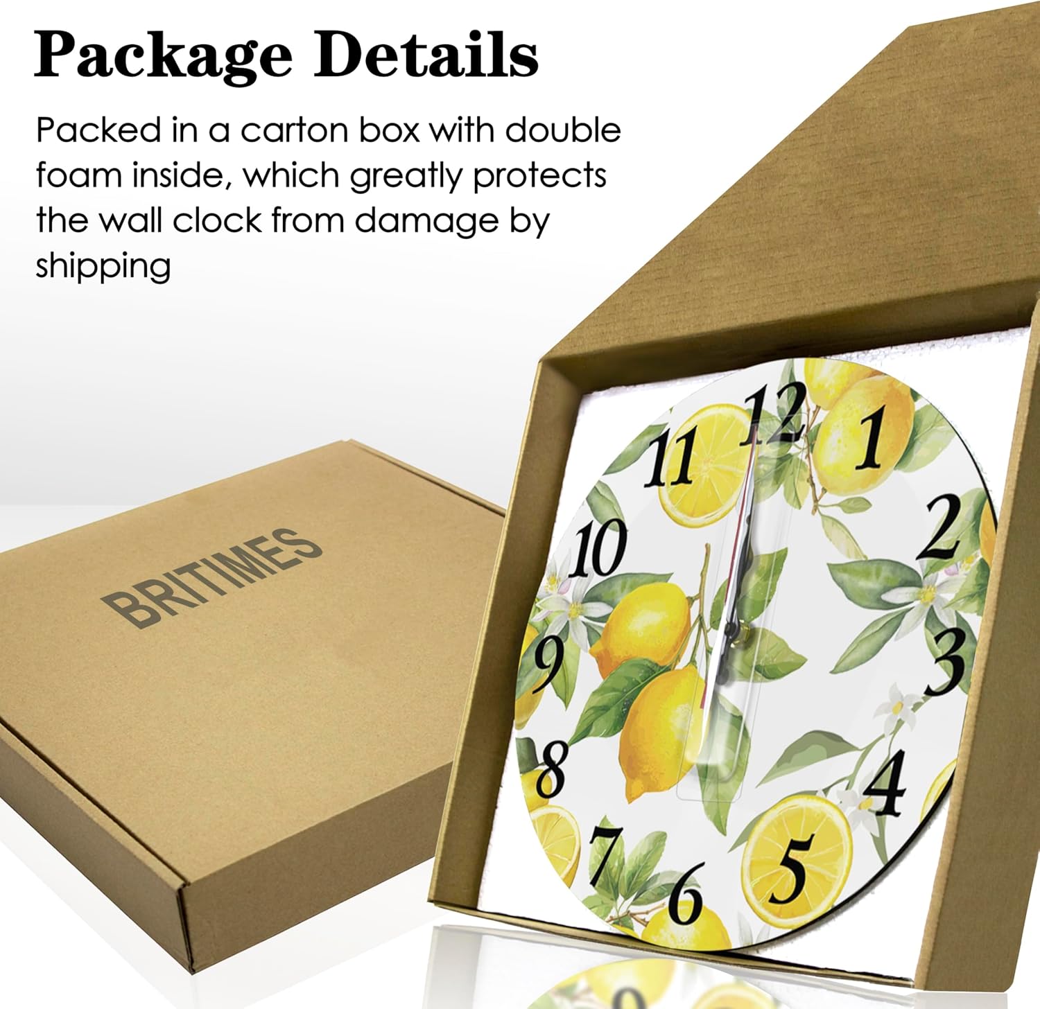 Britimes Round Wall Clock Silent Non-Ticking Battery Operated Clock 10 Inch, Summer Lemon Home Decor for Living Room, Kitchen, Bedroom, and Office