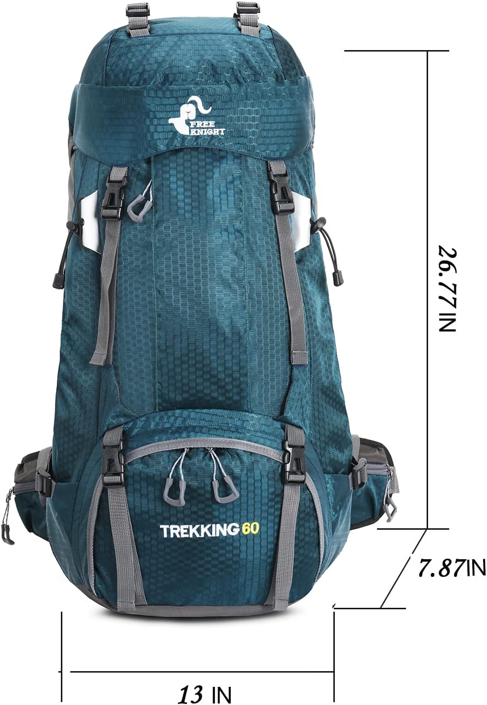Lightweight outdoor backpack, ultralight, only 2.1 lbs for a large 60L capacity, reducing the weight of the backpack so you can carry more other items. The maximum load bearing capacity is 33 lb. Unfolded size: 68 x 33 x 20 cm / 26.77 x 13 x 7.87 inches.