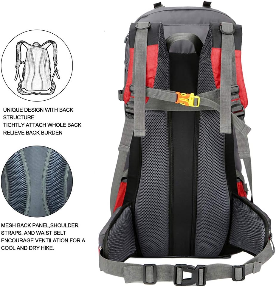 Bseash 60L Waterproof Hiking Camping Backpack with Rain Cover, Large Outdoor Sport Travel Daypack Rucksack for Climbing