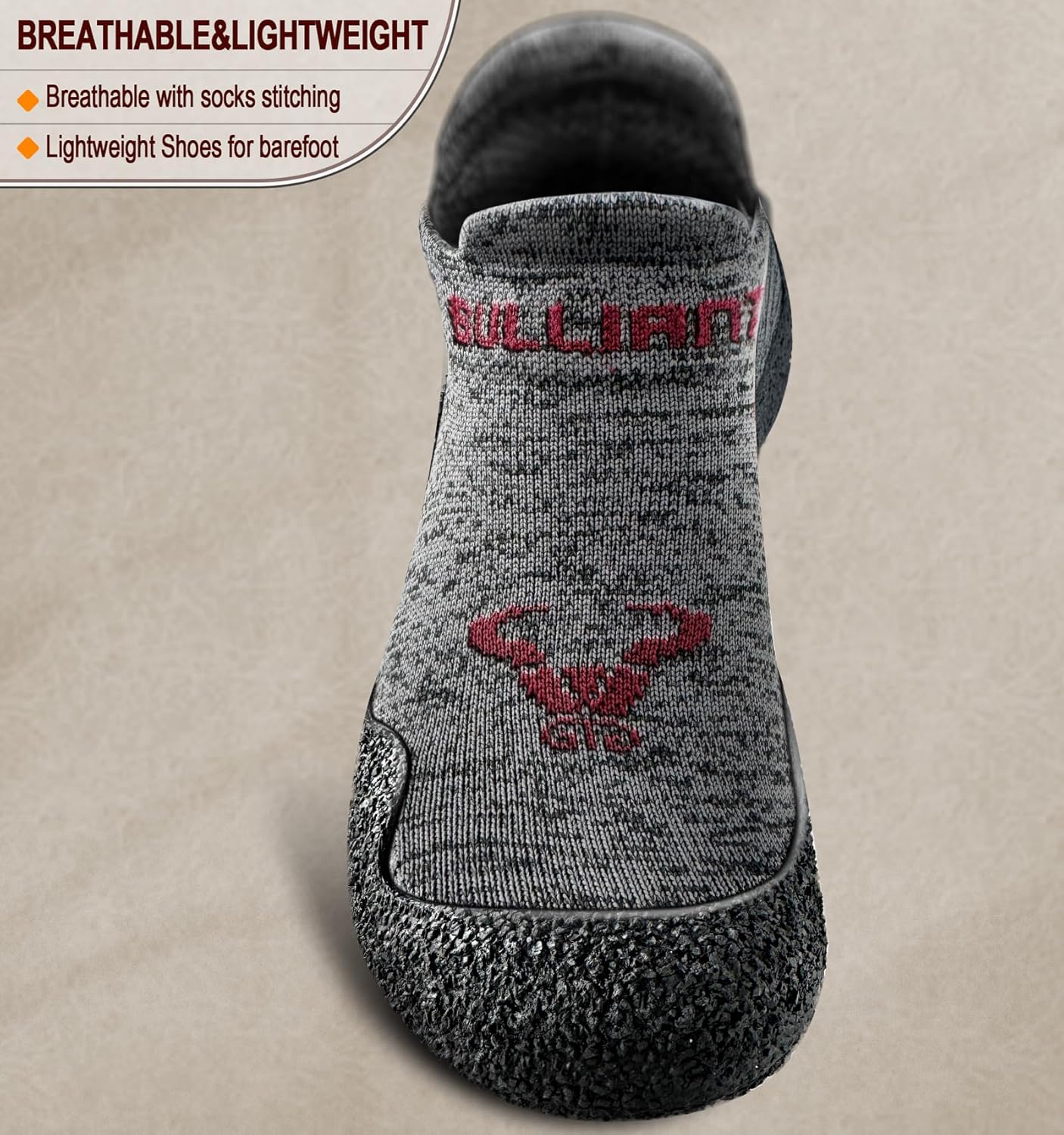 Stay safe on slippery surfaces with our BULLIANT water shoes. The rugged rubber sole with enhanced traction keeps you steady whether you’re hiking, climbing, or walking through wet terrain;