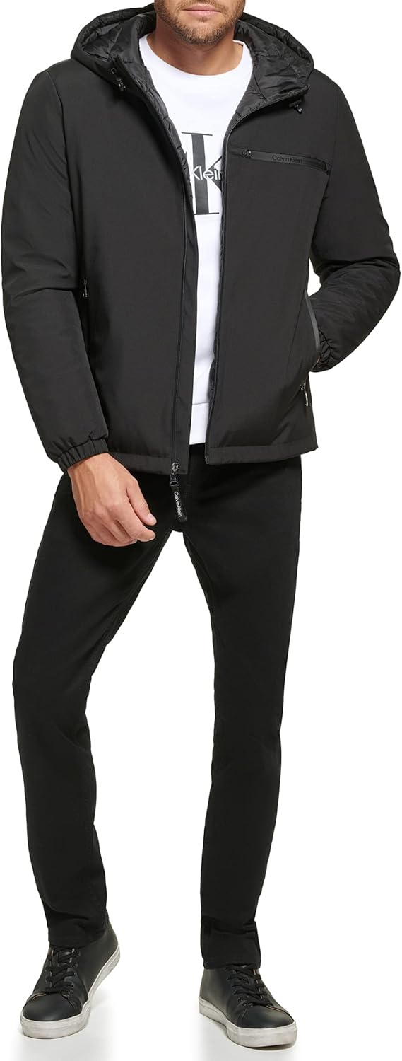 This Calvin Klein mens OUTERWEAR Jacket is a stretch durable cold weather hooded jacket