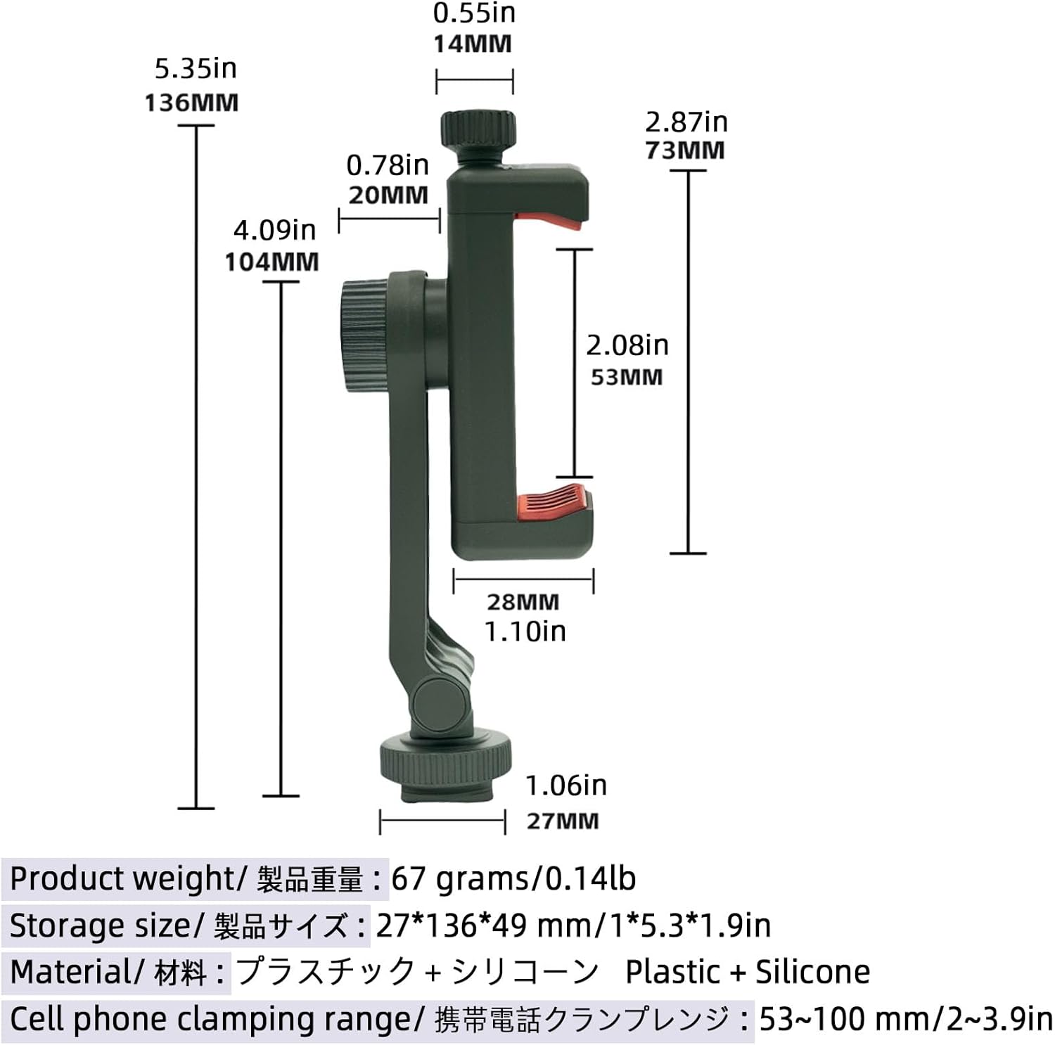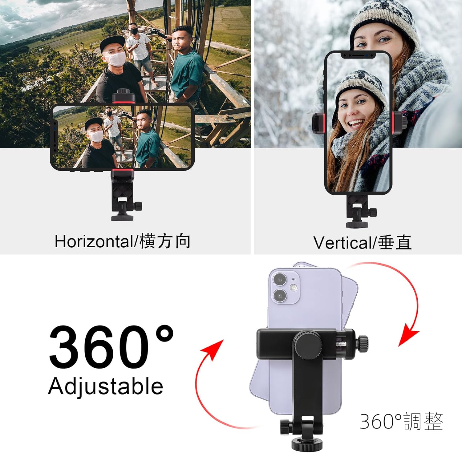 Any angle, Z-axis adjustment: Our phone mount can be adjusted in Z-axis angle, allowing you to adjust the tilt head on a tripod or camera hot shoe without a ball head. Easier to use