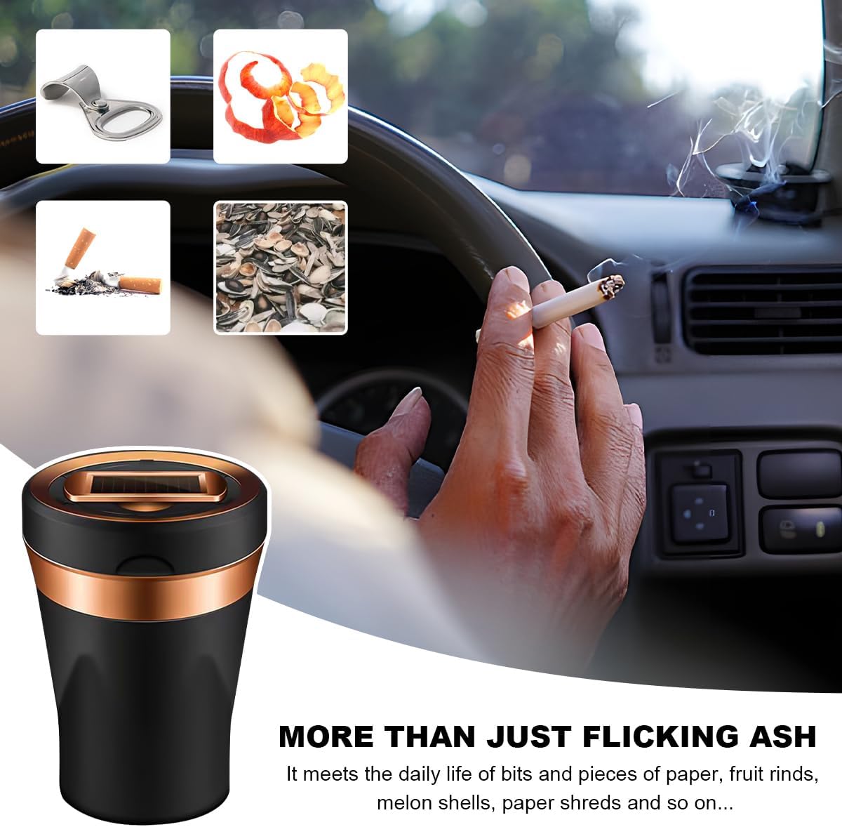 Wide Application: Our car ashtray is compatible with most car cup holders. In addition to holding ash and cigarettes, it can also be used to store waste such as fruit peels and paper scraps. Furthermore, it is equally suitable for use in offices, homes, restaurants, outdoors, and other settings