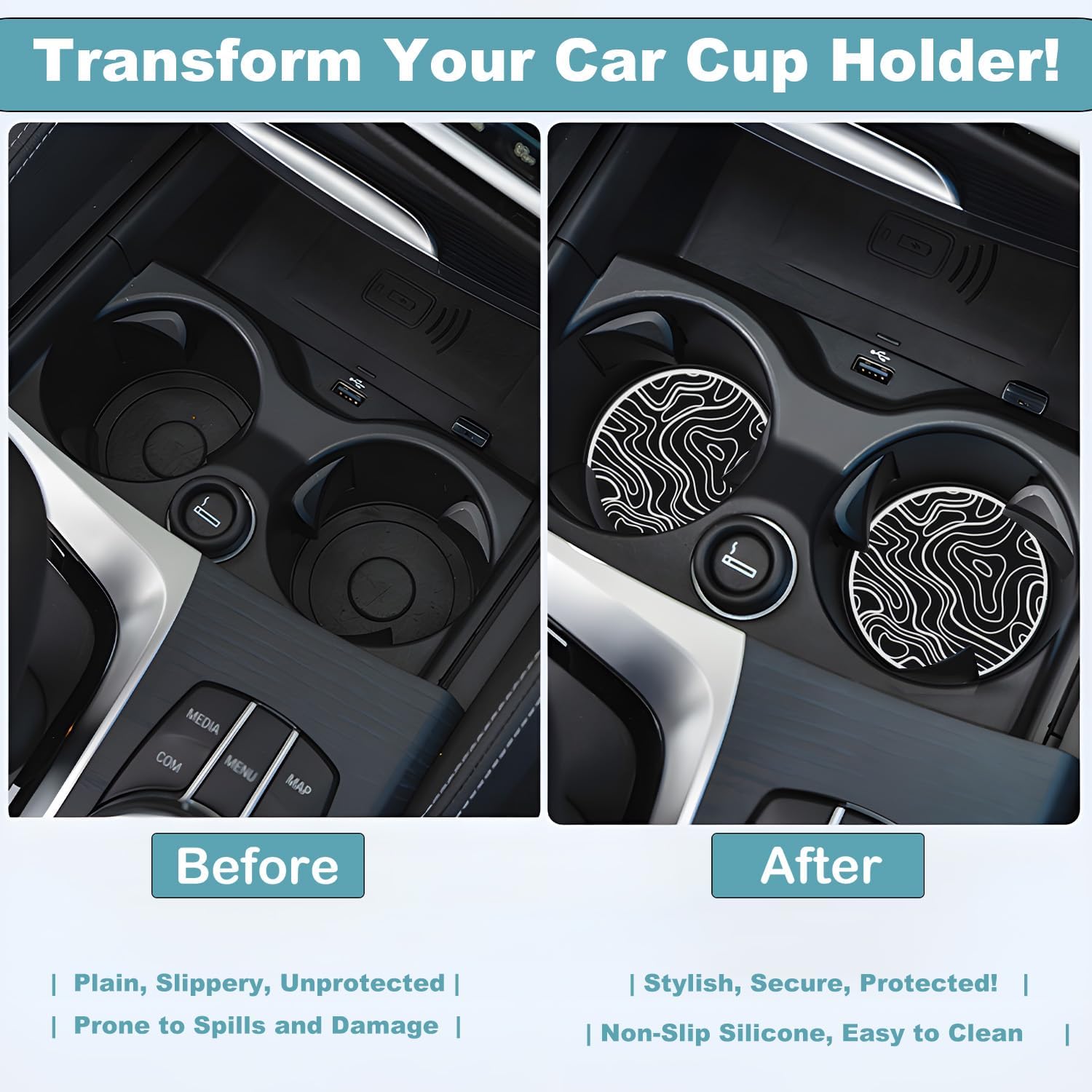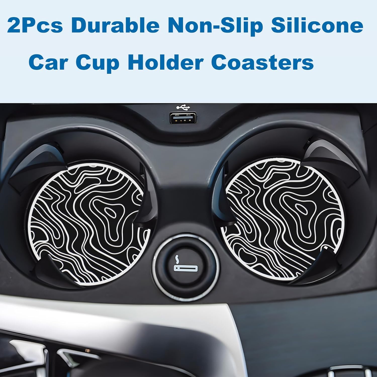 Car Cup Holder Coaster, Silicone Cup Holder Insert, Universal Non-Slip Cup Holders, Car Accessories Interior for Women and Man Interior Sets 2 Pack(Topographic)