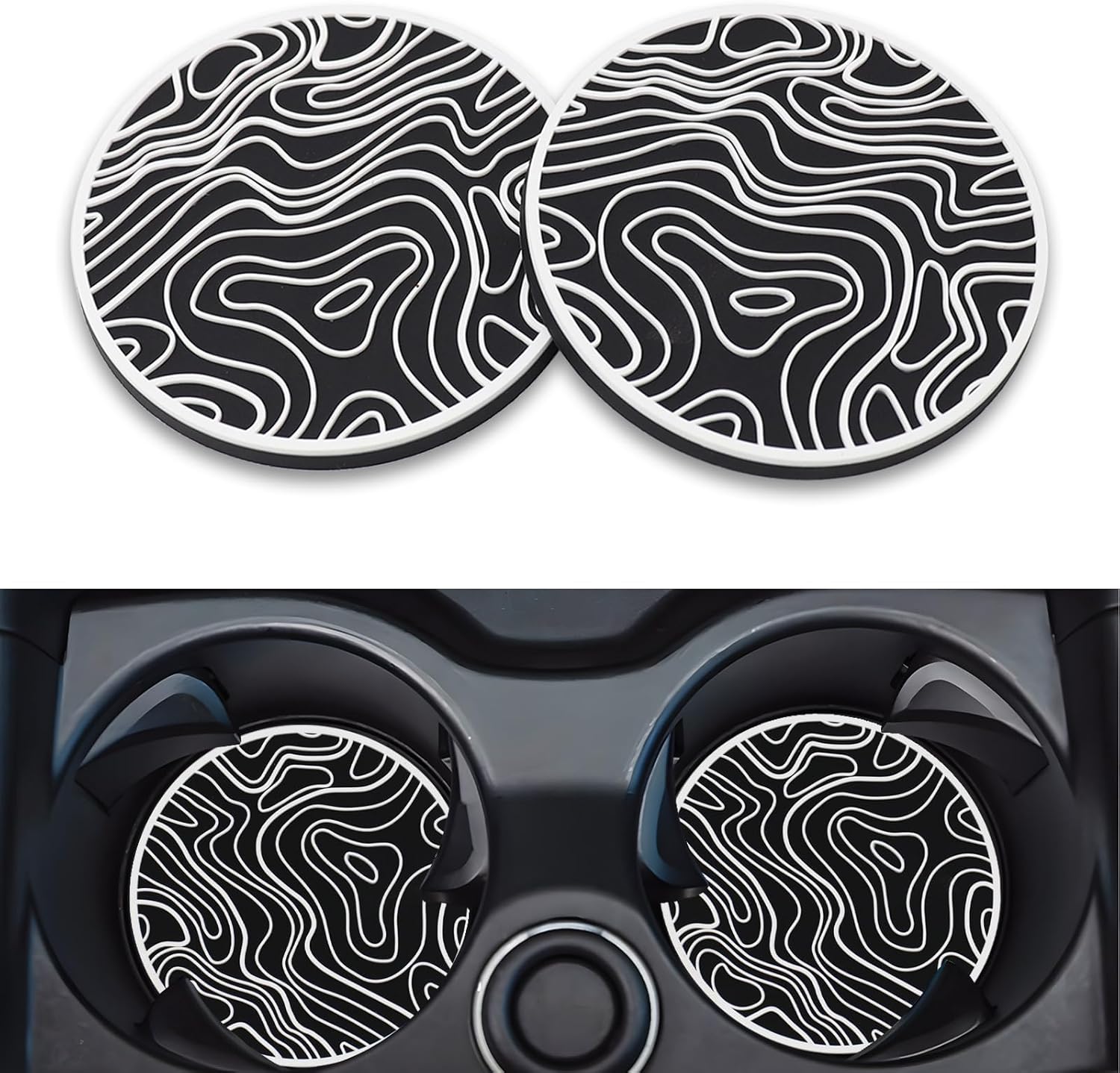 Featuring a unique topographic map design, these coasters add a touch of sophistication to your car’s interior, making them not only practical but also a stylish accessory. They serve as a protective pad, safeguarding your cup holders from scratches, stains, and damage caused by extreme temperatures from hot coffee or iced drinks.