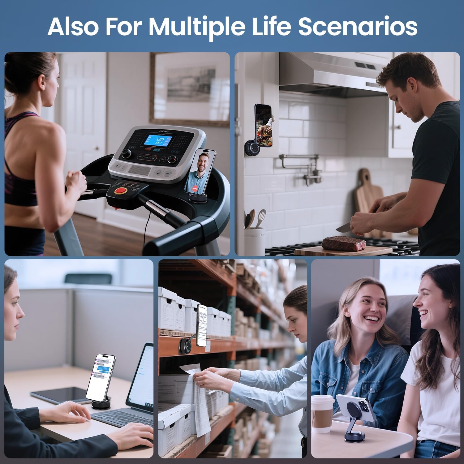 [360° Swivel & Dual-Axis Adjustment] This car phone holder features a 360° rotating base and 210° dual-axis folding metal arms, letting you effortlessly adjust the viewing angle for the perfect position. Easily switch between landscape and portrait mode whether you’re in the car or at home. Tested over 5000 times for durability, it offers reliable performance for long-term use.