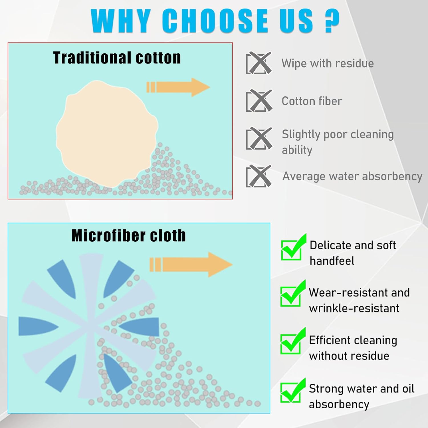 【Dual-Purpose】: This cleaning cloth is dual-purpose for both dry and wet use. The black part contains an absorbent sponge for wet wiping, which can remove oil stains, fingerprints and other stains. The gray part is used for dry wiping, which can be used to remove dust.